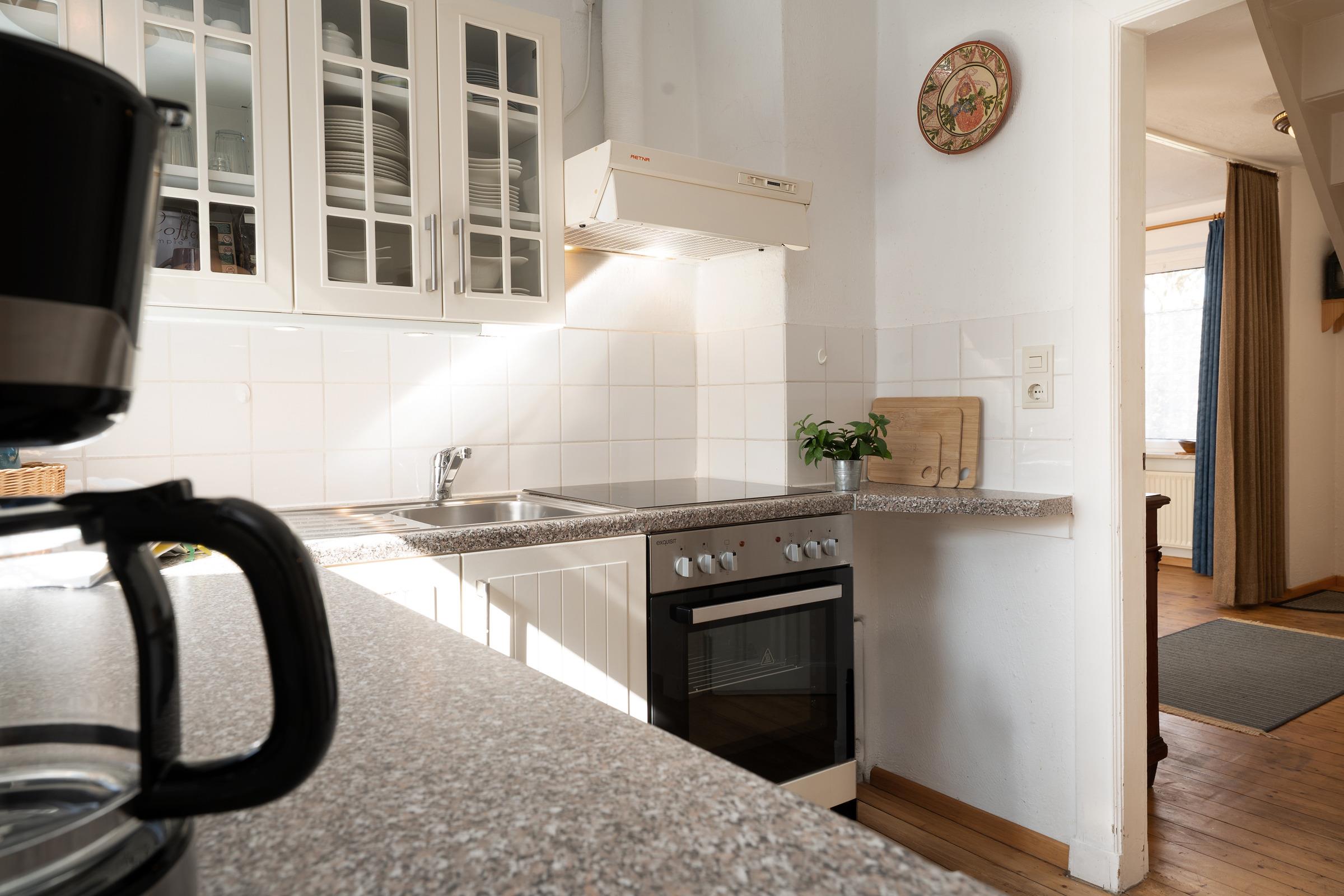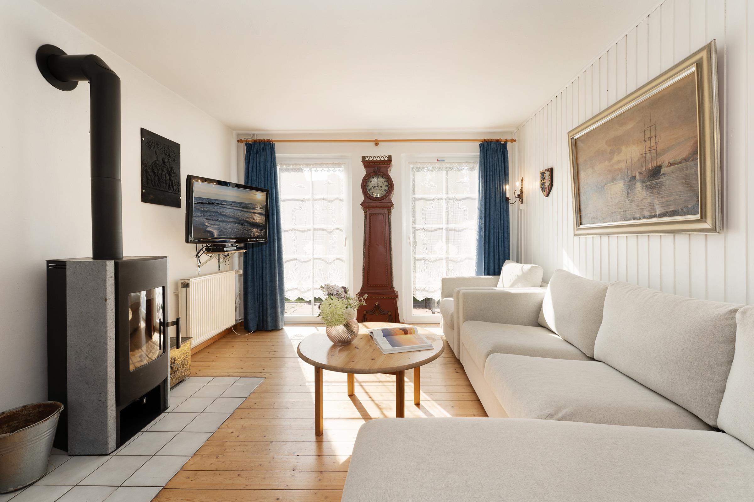 Die Doppelhaushälfte Seepferdchen ist mit viel Liebe zum Detail und antiken Möbeln eingerichtet. Freuen Sie sich auf ein gemütliches Wohnzimmer mit Sitzecke, TV-Gerät und Kaminofen. Die Küche ist gut ausgestattet und ermöglicht eine angenehme Selbstversorgung. Insgesamt gibt es drei Schlafzimmer, eins mit Doppelbett, eins mit französischem Bett und eins mit einem Einzelbett. Das großzügige Duschbad hat Tageslicht und ist hell gefliest. Zeit im Freien können Sie auf der Terrasse mit umzäunten Garten verbringen. Ein Grill ist vorhanden.