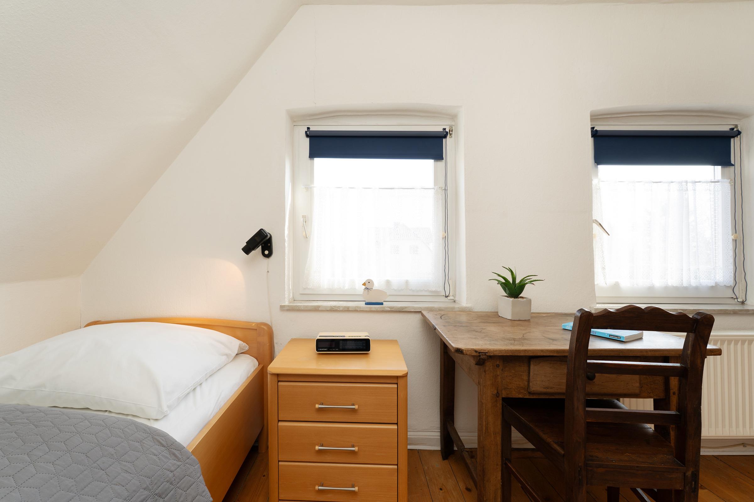 Schlafzimmer 3 (1. Stock): 1 Einzelbett, Verdunkelung: Rollos, Platz für ein Babybett vorhanden