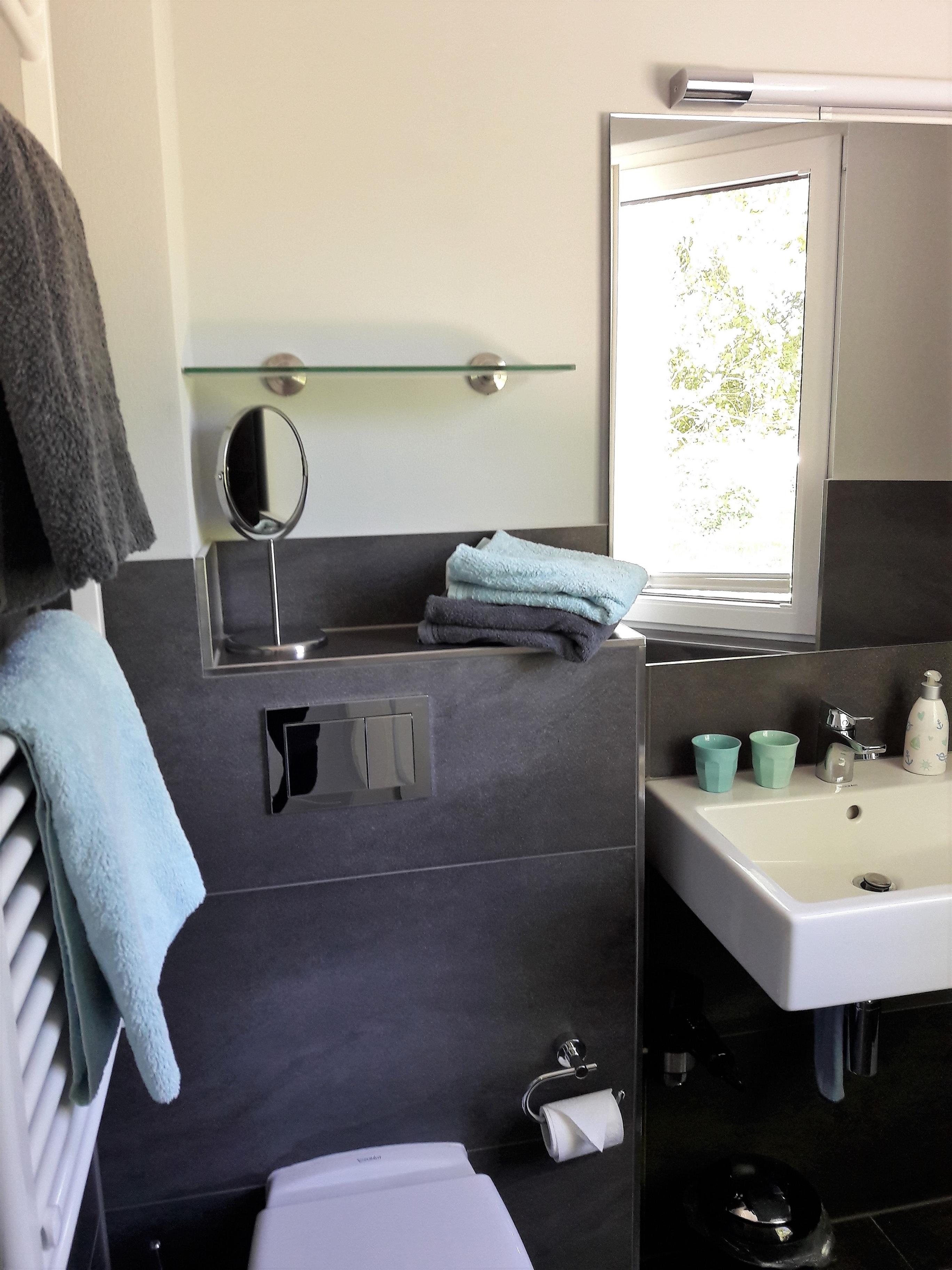 Und sollte es mal etwas kühler sein, wärmt der Kaminofen Sie schnell wieder durch (Holz liegt am Schuppen).