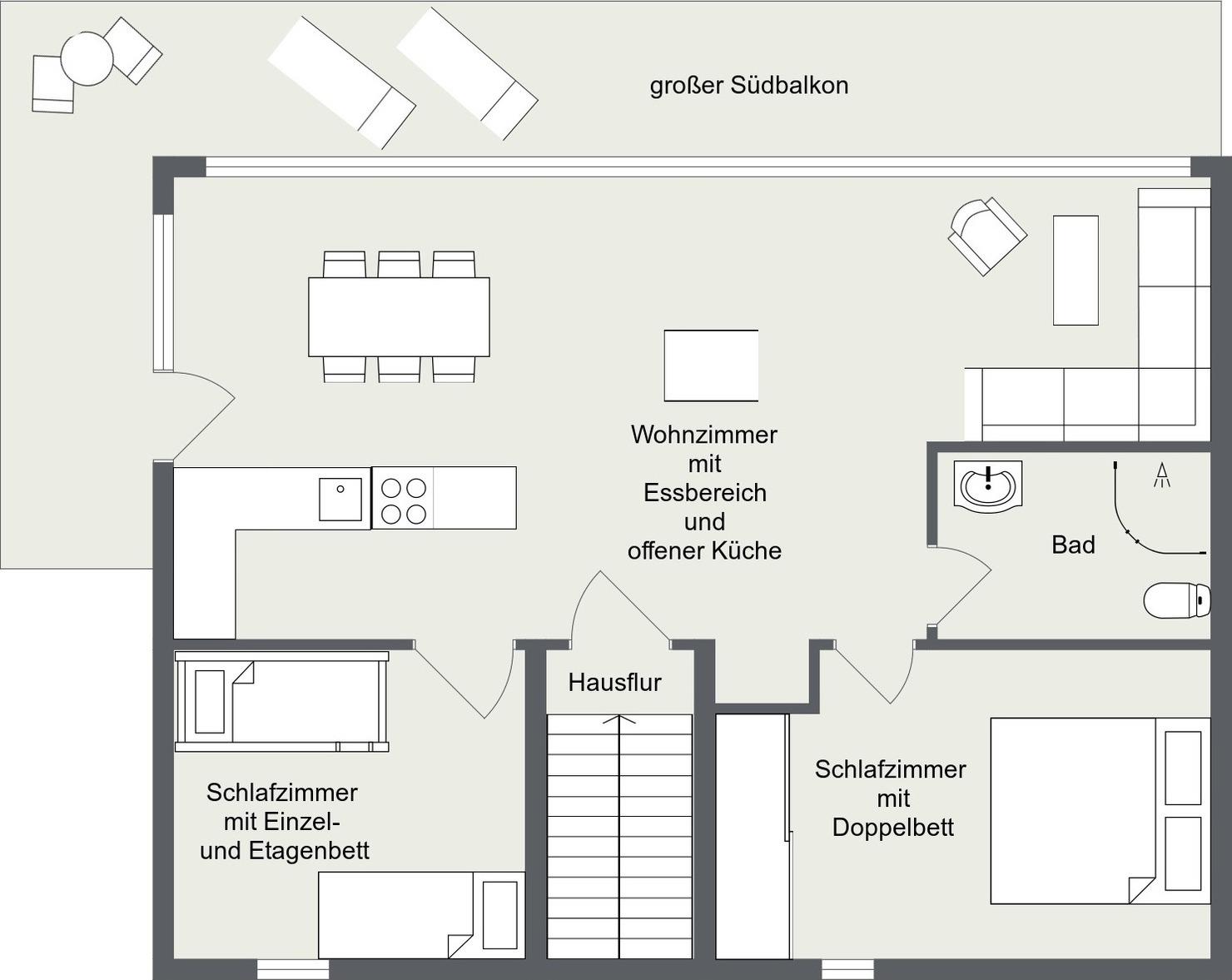 Die Wohnung "Schwalbennest" befindet sich im Ferienhaus Rücker und liegt sehr ruhig in dem kleinen Ort Gold auf Fehmarn direkt an der Ostsee. Die Wohnung hat eine Größe von 75 qm und eignet sich für maximal 5 Personen. Sie ist unterteilt in einen Wohnraum mit Essbereich und moderner Küchenzeile,, zwei separaten Schlafzimmern und einem Duschbad. Der große Südbalkon ist mit Gartenmöbeln und Liegen ausgestattet, vorm Haus gibt es eine Terrasse mit Gartenmöbeln und Grill.