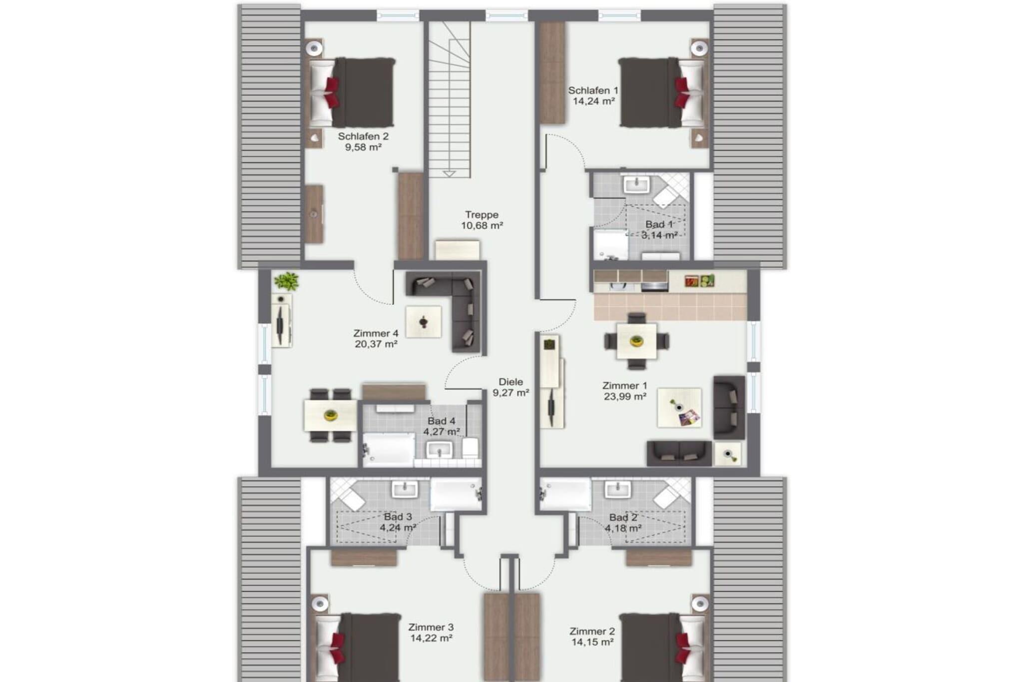 Stueetage: (Stue(Fjernsyn(Smart-TV), DVD-afspiller), Køkken(spisebord, radio, CD-afspiller, kogeplade(glaskeramisk), elkedel, brødrister, emhætte, kaffemaskine, ovn, mikrobølgeovn, opvaskemaskine , køleskab(+ fryser), Blender), soveværelse(dobbeltseng(180 x 200 cm)), soveværelse(dobbeltseng(180 x 200 cm)), soveværelse(dobbeltseng(180 x 200 cm)), badeværelse(badekar, bruser, håndvask, toilet), badeværelse(håndvask, toilet), Repos, fællesrum(pejs)) På 1. etage: (stue / spisestue(Fjernsyn, spisebord, kogeplade(glaskeramisk), elkedel, brødrister, kaffemaskine, ovn, køleskab(+ fryser)), stue / spisestue(Fjernsyn, spisebord, kogeplade(glaskeramisk), elkedel, brødrister, kaffemaskine, ovn, køleskab(+ fryser)), soveværelse(enkeltseng(90 x 200 cm), dobbeltseng(160 x 200 cm)), soveværelse(dobbeltseng(160 x 200 cm), Fjernsyn), soveværelse(dobbeltseng(160 x 200 cm), Fjernsyn), soveværelse(dobbeltseng(180 x 200 cm)), badeværelse(bruser, håndvask, toilet, føntørrer), badeværelse(bruser, håndvask, toilet, føntørrer), badeværelse(bruser, håndvask, toilet, føntørrer), badeværelse(bruser, håndvask, toilet, føntørrer), Repos) sauna(privat), vaskemaskine, varme, terrasse, have(privat, indhegnet), cykelopbevaring, havemøbler, solstole, grill, parkering, barnestol, strygebræt, strygejern, hyggespil, baby crib(free), Håndklæder mod et gebyr, Sengelinned mod et gebyr