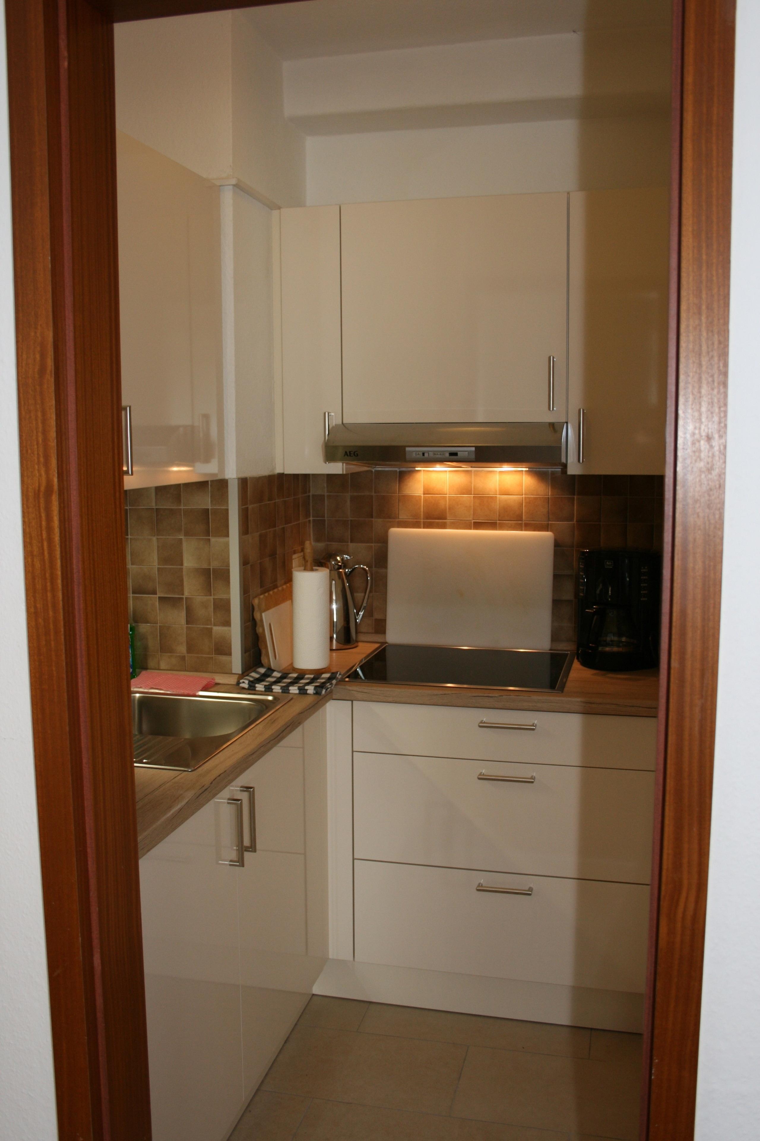 Neben einem Wohn-/Schlafraum (Sat-TV, DVD, CD/Radio) finden Sie dort eine umfangreich ausgestattete kleine Einbauküche. Das Bett hat eine Größe von 140x200 cm.