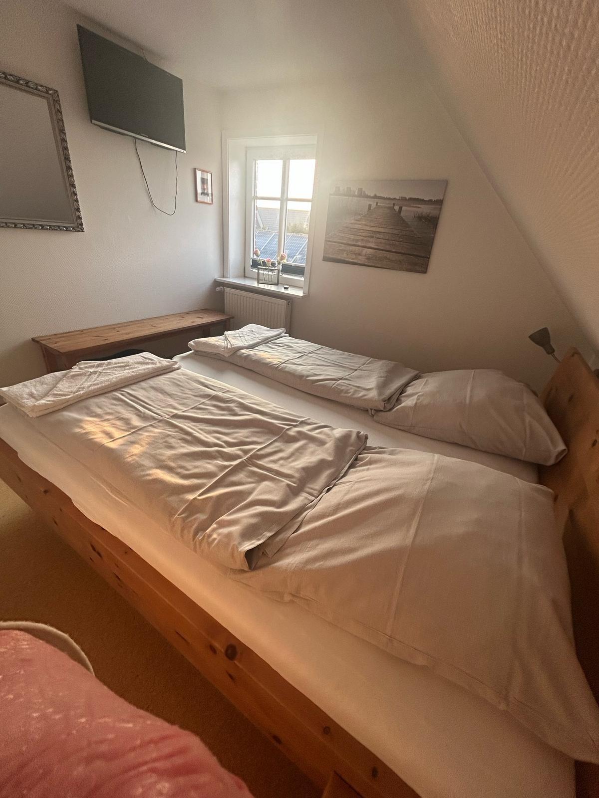 - Schlafzimmer mit Doppelbett und Flachbildfernseher