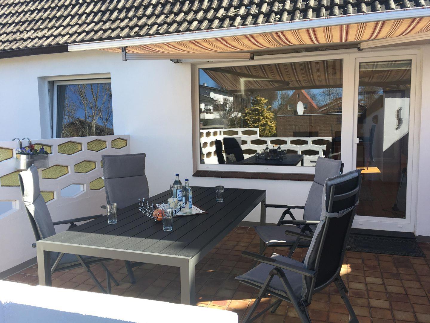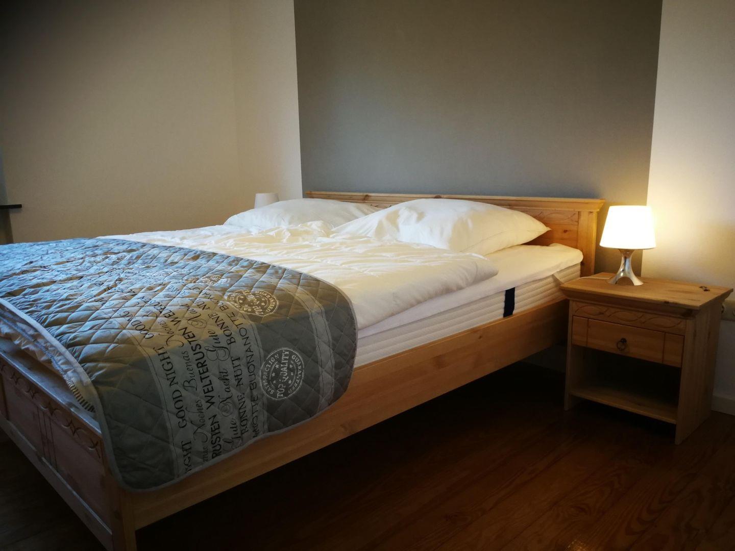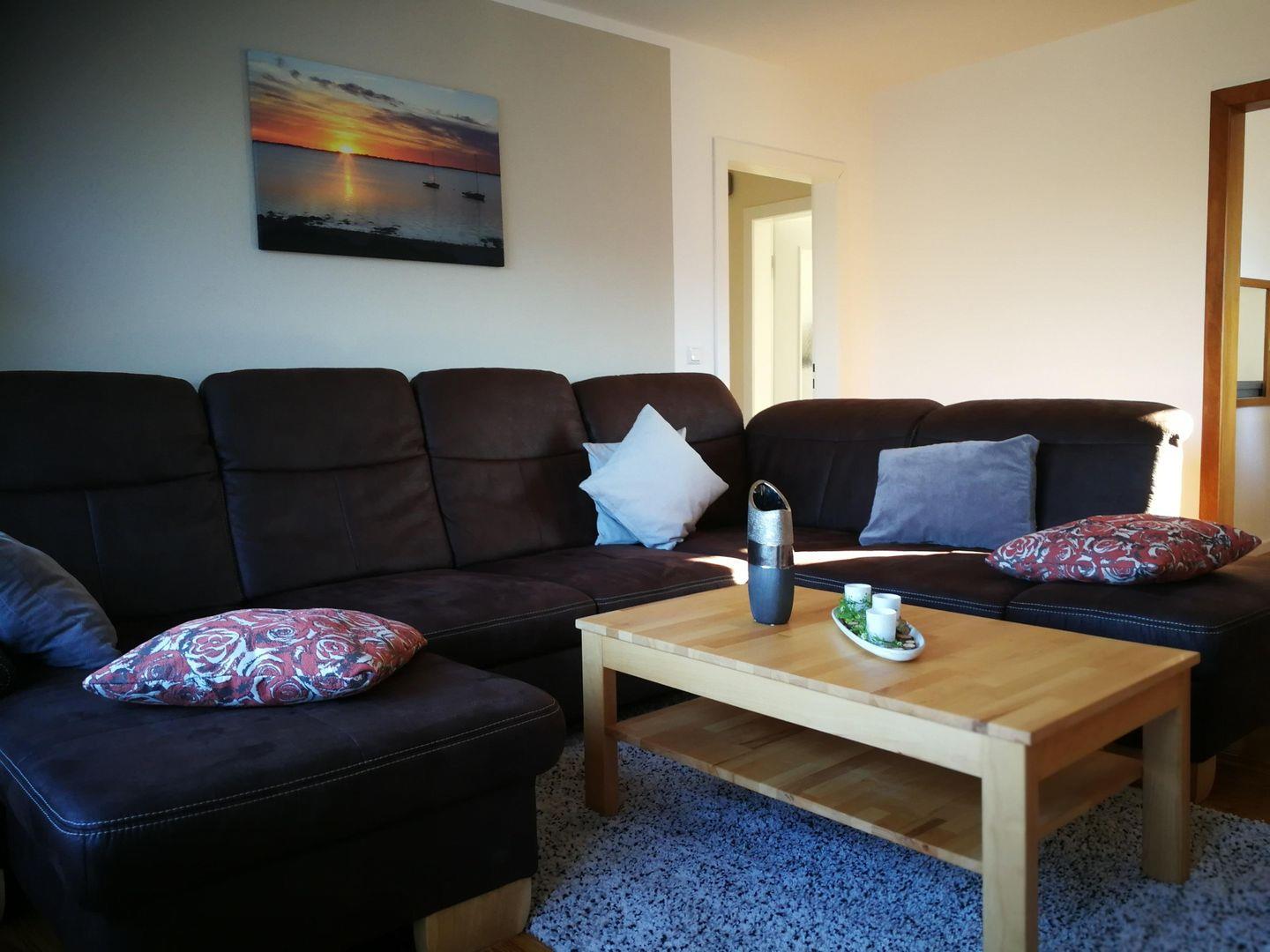 Der neu eingerichtete Wohnbereich der Ferienwohnung lädt zum Verweilen und Entspannen ein. Ein kleines Radio sowie SAT-TV sorgen für eine gute Unterhaltung. In der gesamten Wohnung ist ein leistungsstarkes kostenfreies w-lan vorhanden. Die integrierte Küche mit 4 Platten-Cerankochfeld und Backofen sowie Spülmaschine bietet Ihnen alle nötigen Annehmlichkeiten. Im Elternschlafzimmer erwartet Sie ein Doppelbett mit 2 Nachttischen und einem Kleiderschrank. Das zweite Schlafzimmer (ideal für Kinder) wurde mit zwei Einzelbetten ausgestattet. Für die Erfrischung steht Ihnen ein helles und freundliches Duschbad mit einem Handtuchtrockner zur Verfügung. Neben dem Duschbad befindet sich auch ein Gäste-WC. Wer nach einem anstrengenden Strand- oder Erkundungstag noch keine Lust hat in den 4 Wänden zu hocken, kann gern den Tag auf der eigenen möblierten Süd-West-Terrasse den Grill anschmeißen und den Tag ausklingen lassen. Ihren PKW oder Mietwagen können Sie gerne direkt am Haus ohne Mehrkosten abstellen. Falls Sie Ihre Fahrräder mitbringen oder welche mieten möchten, steht Ihnen ein abschließbarer Schuppen mit Lademöglichkeit für E-Bikes zur Verfügung.