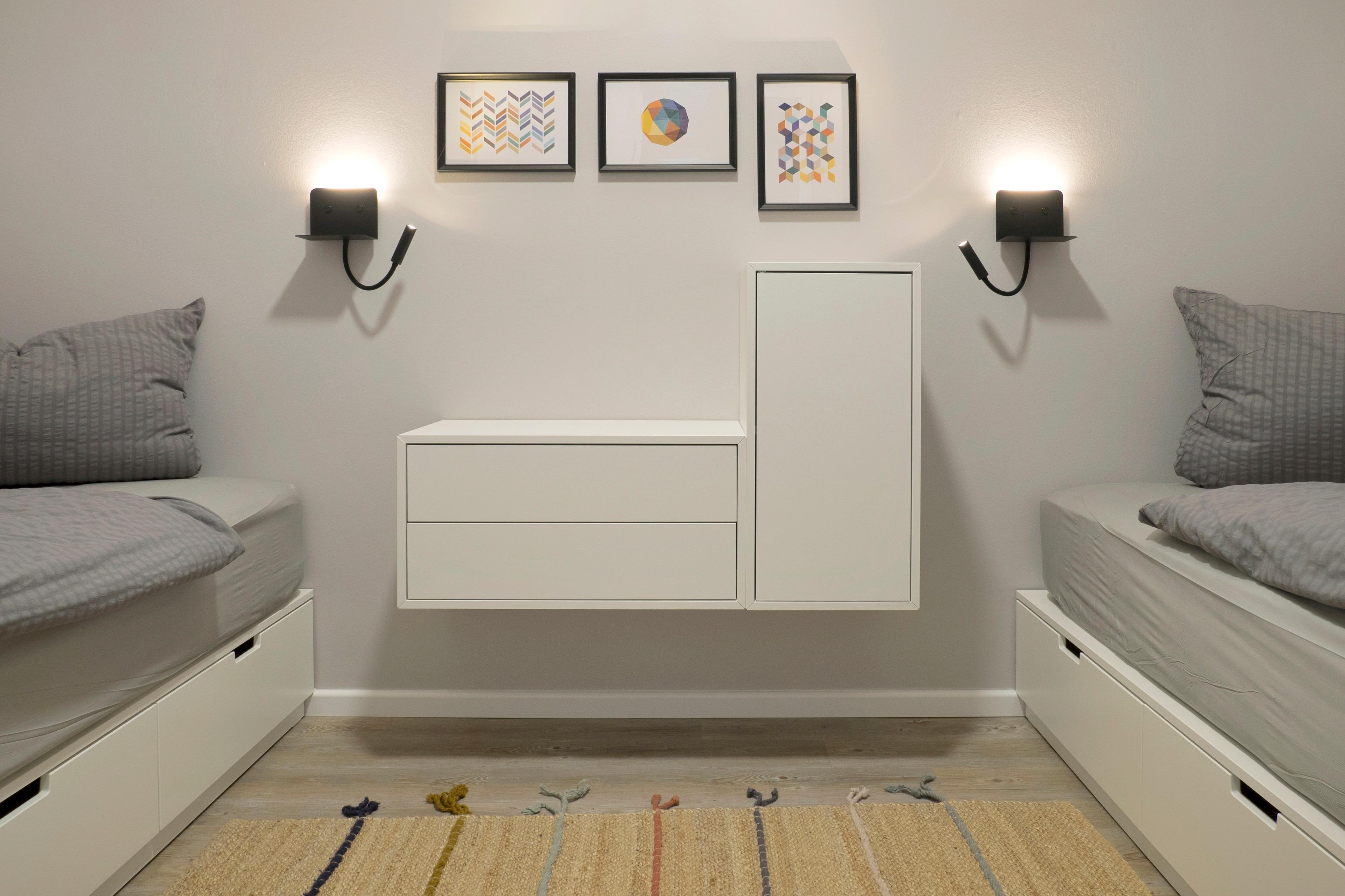 Schlafzimmer mit zwei Einzelbetten im UG