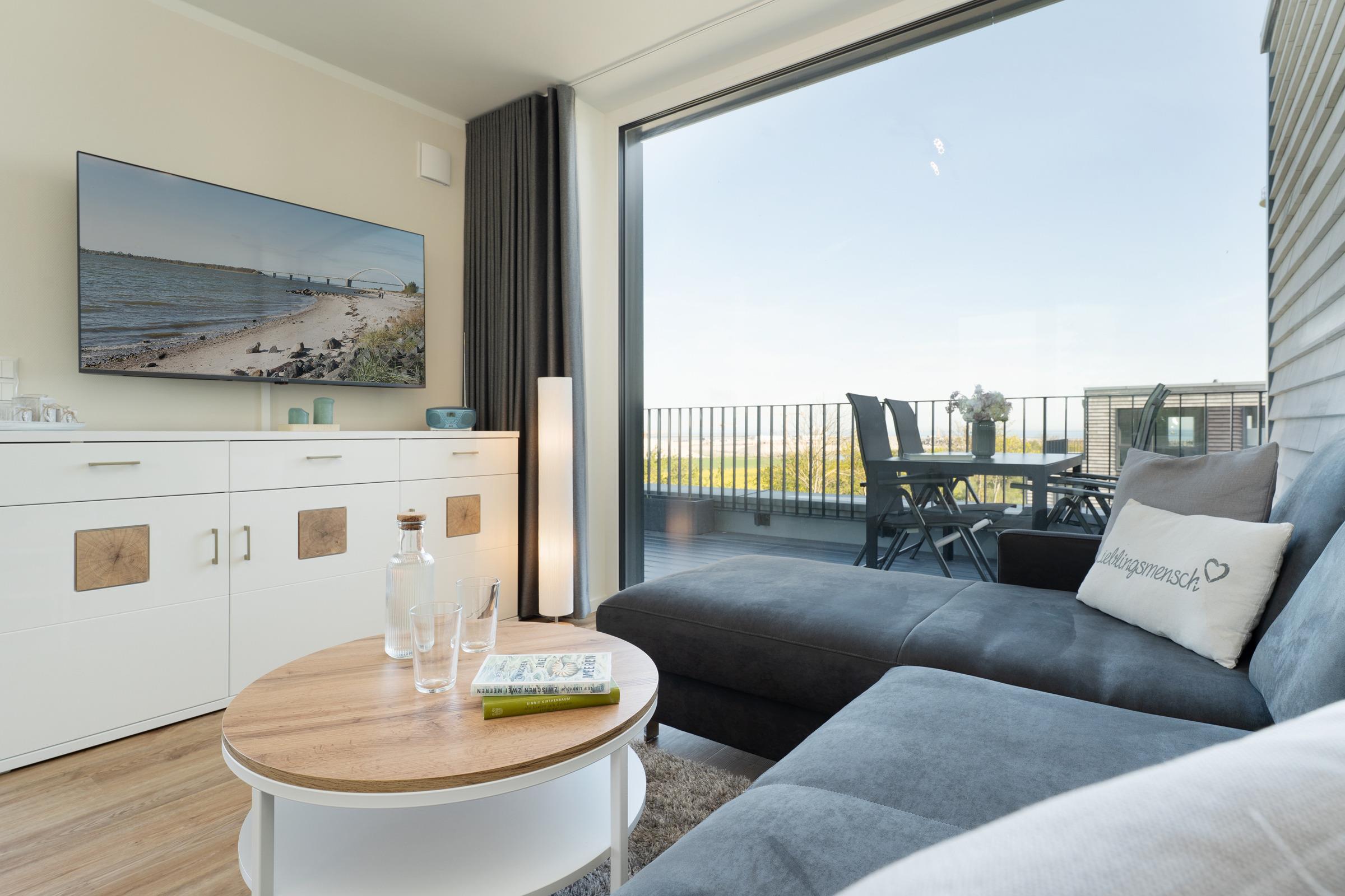 Strandnahe 2-Zimmer-Ferienwohnung in Marienleuchte auf Fehmarn mit 64 m² Wohnfläche und einer Dachterrasse für bis zu 4 Personen.