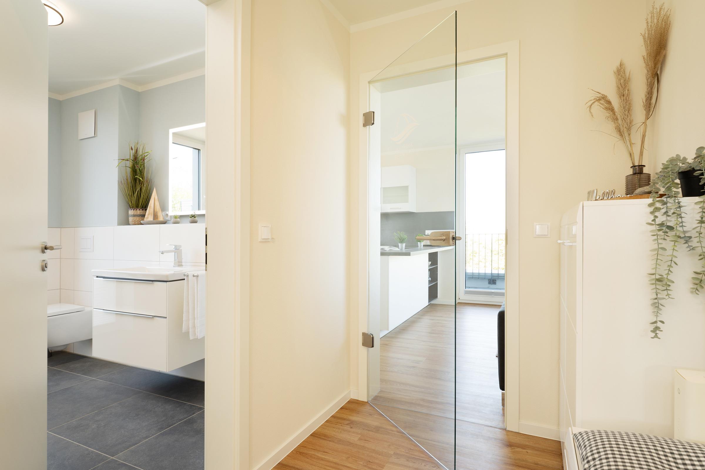 Das Badezimmer ist modern gestaltet und ein echtes Highlight für Wellness-Fans: neben der bodengleichen Dusche und Fußbodenheizung finden Sie hier eine Sauna vor. Der Erholungsfaktor ist hier garantiert! Eine Waschmaschine in der Abstellkammer ist ebenfalls vorhanden.