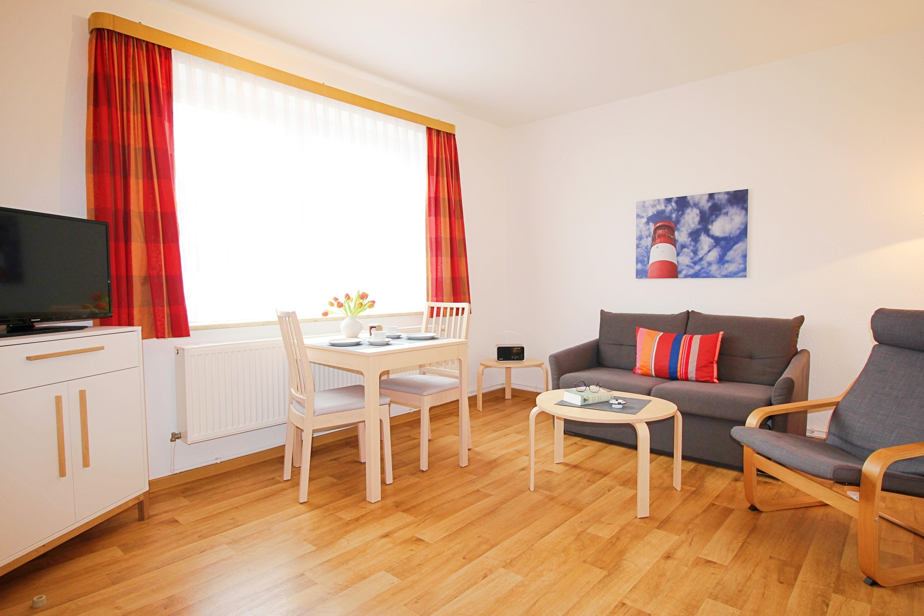 Die Ferienwohnung Nr. 8 (kein Meerblick) besteht aus Wohnraum, separatem Schlafzimmer für zwei Personen, Küche und Dusche/WC. Die Aufbettung für ein Kind ist möglich. Der Internetzugang in der Ferienwohnung (W-Lan) ist kostenlos verfügbar.