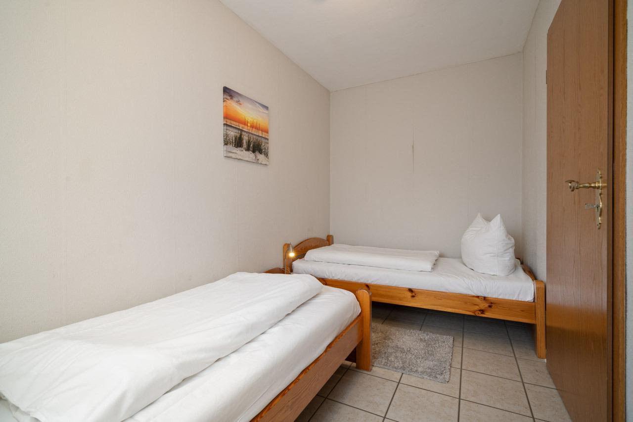 Schlafzimmer 2: 2 Einzelbetten (je 90x190cm), Verdunkelung: Gardinen