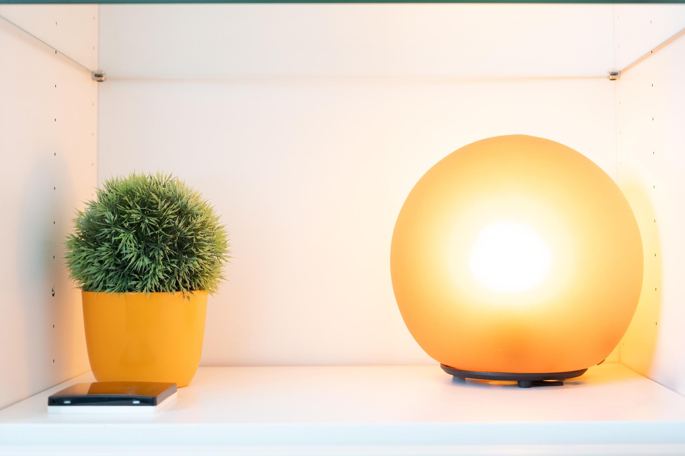 Wohn-/ Schlafzimmer : 1 Schlafsofa (140 x 200 cm), Kleiderschrank, TV, Verdunkelung: elektrische Rollladen
