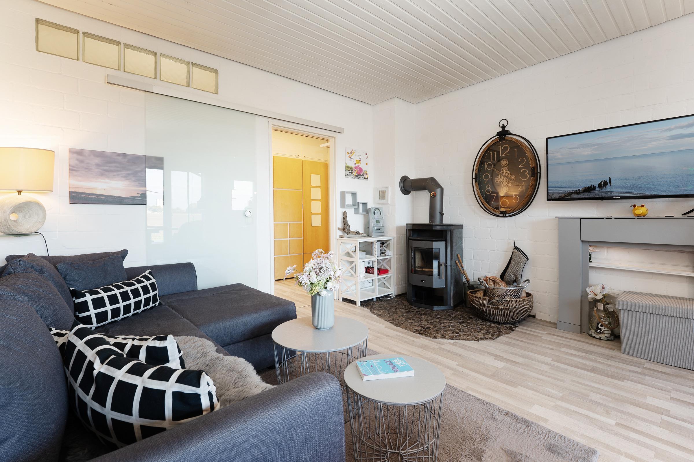 Der helle Wohnbereich lädt mit gemütlicher Sitzecke, Fernseher und Kaminofen zu entspannten Stunden ein. Von hier aus gelangen Sie auf die möblierte Terrasse, die mit Gartenmöbeln und Strandkorb ausgestattet ist und zum Verweilen im Freien einlädt. Die offene Küchenzeile verfügt über moderne Geräte wie Backofen, Geschirrspülmaschine, Kühlschrank, Backmikrowellenkombination, Kaffeepadmaschine und ermöglicht eine komfortable Selbstverpflegung. Im angrenzenden Essbereich finden alle Gäste ausreichend Platz für gemeinsame Mahlzeiten. Das separate Schlafzimmer ist mit einem komfortablen Doppelbett eingerichtet und verspricht erholsame Nächte. Zusätzlich steht im Wohnbereich ein Schlafsofa zur Verfügung. Das Badezimmer ist modern ausgestattet und bietet eine Dusche für die Erfrischung am Morgen.