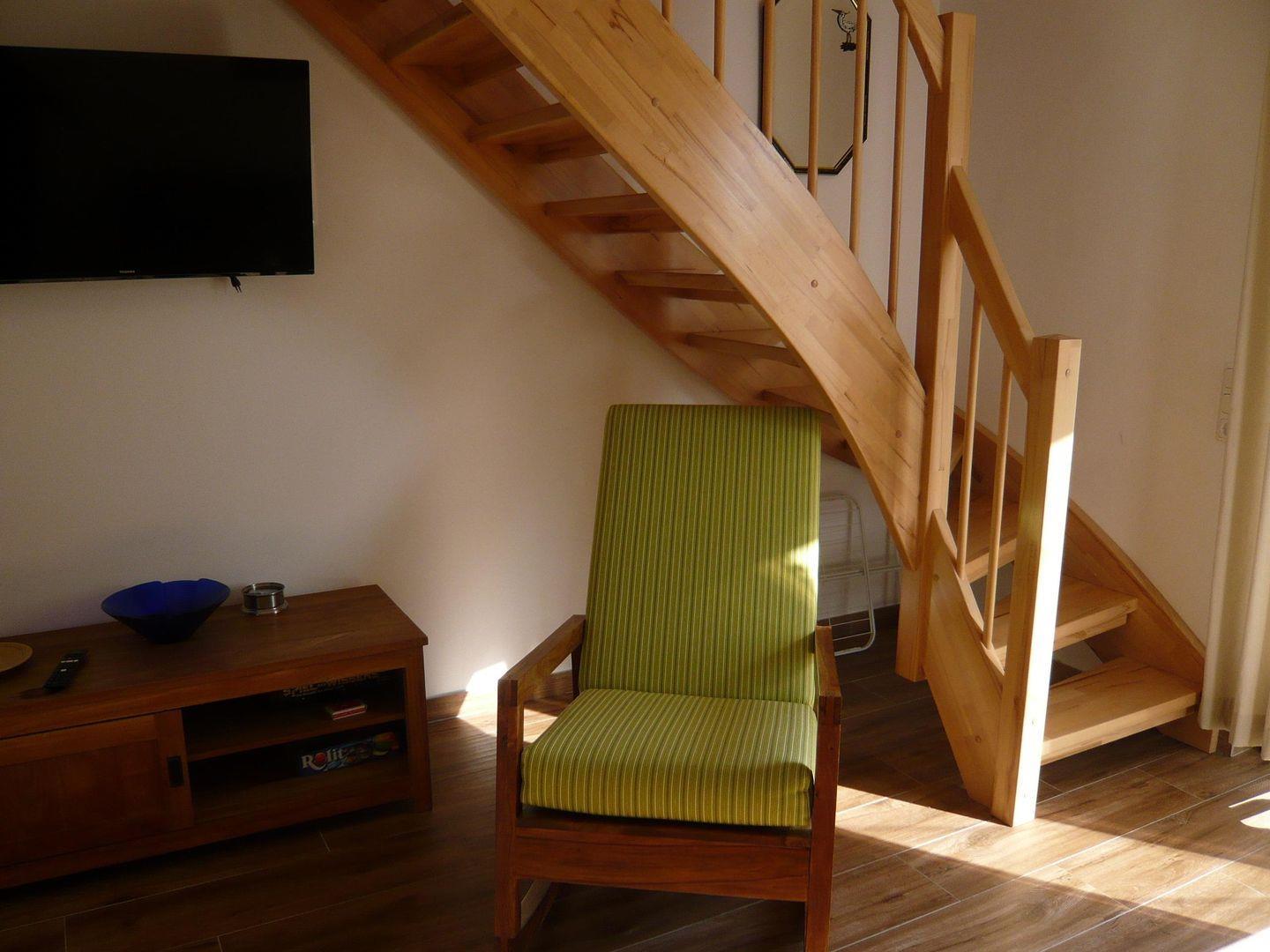 ist sehr geschmackvoll eingerichtet und verfügt zusätzlich über eine Leseecke. Im Außenbereich finden Sie Ihren KFZ-Stellplatz und eine Terrasse zum verweilen. Im gesamten Bereich ist W-lan vorhanden. Das Elternschlafzimmer oben ist mit dem 2. Schlafzimmer durch eine Tür getrennt. Nach unten zum Wohnzimmer ist der Bereich durch eine offene Treppe getrennt.