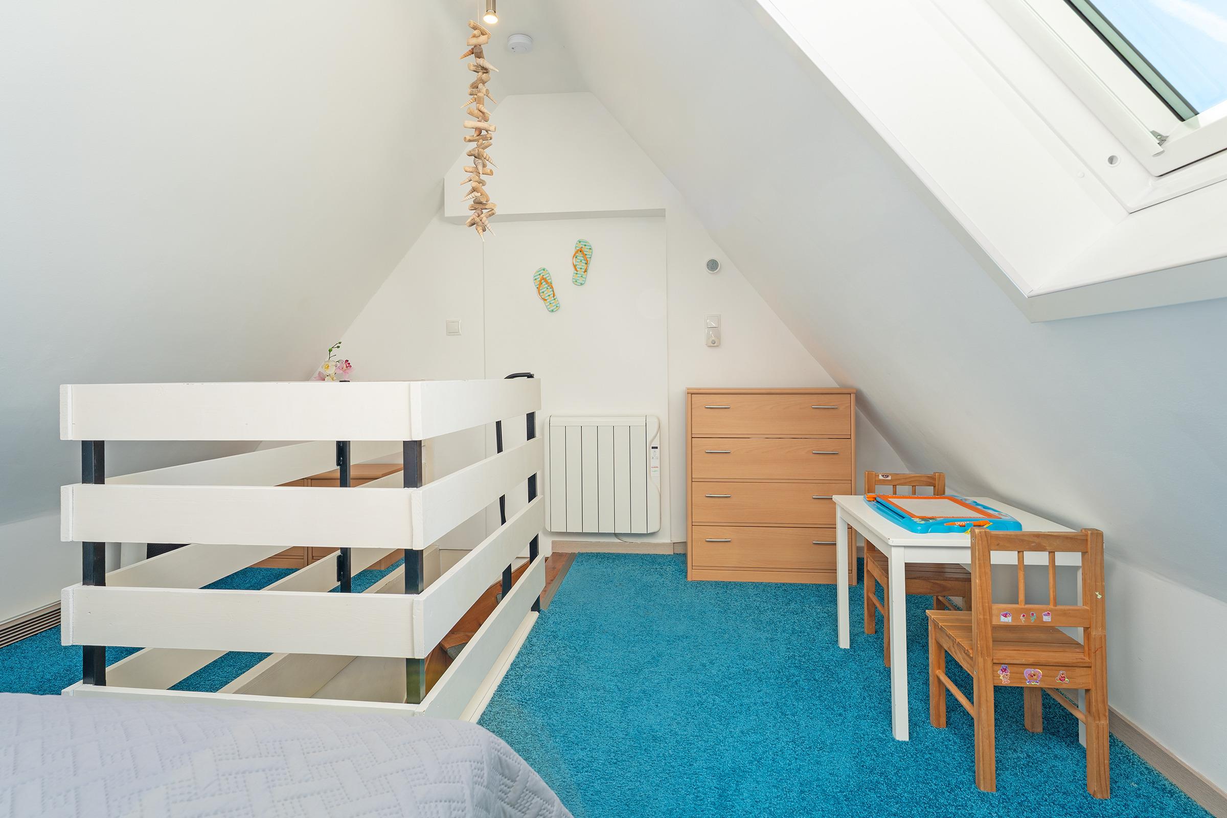 Reinkommen, wohlfühlen und Urlaub machen - ist in diesem Ferienhaus das Motto. Hier wurde an alles gedacht, was das Herz begehrt. Das Haus wurde mit viel Liebe zum Detail und zum Wassersport eingerichtet. Im Erdgeschoss empfängt Sie ein geschmackvoll möblierter Wohnbereich mit Sofa und TV. Über die Terrassentür gelangen Sie nach draußen. Hier befindet sich ein gemütlicher Essplatz mit ausreichend Platz. Ein Holzkohlegrill ist vorhanden. Neben der Terrasse liegt der schöne Gemeinschaftsgarten. Die gut ausgestattete Küche bietet Ihnen Annehmlichkeiten wie eine Spülmaschine, eine Mikrowelle und einen Backofen. Den Kaffee am Morgen können Sie sich mit einer Filter-Kaffeemaschine oder einer Kapsel-Maschine zubereiten. Ein Essbereich steht direkt in der Küche. Im Obergeschoss gibt es ein Schlafzimmer mit einem Doppelbett (180 cm breit). Drei Kommoden, ein Fernseher mit kleiner Couch und Tisch stehen hier zur Verfügung. Vom Schlafzimmer aus gelangen Sie auf den Balkon, der mit vier Sitzplätzen und einem Tisch möbliert ist. Weitere Schlafgelegenheiten bieten ein kleines Kinderzimmer mit Etagenbett (90x200 cm) sowie ein Doppelbett (140x200 cm) im Dachgeschoss.
