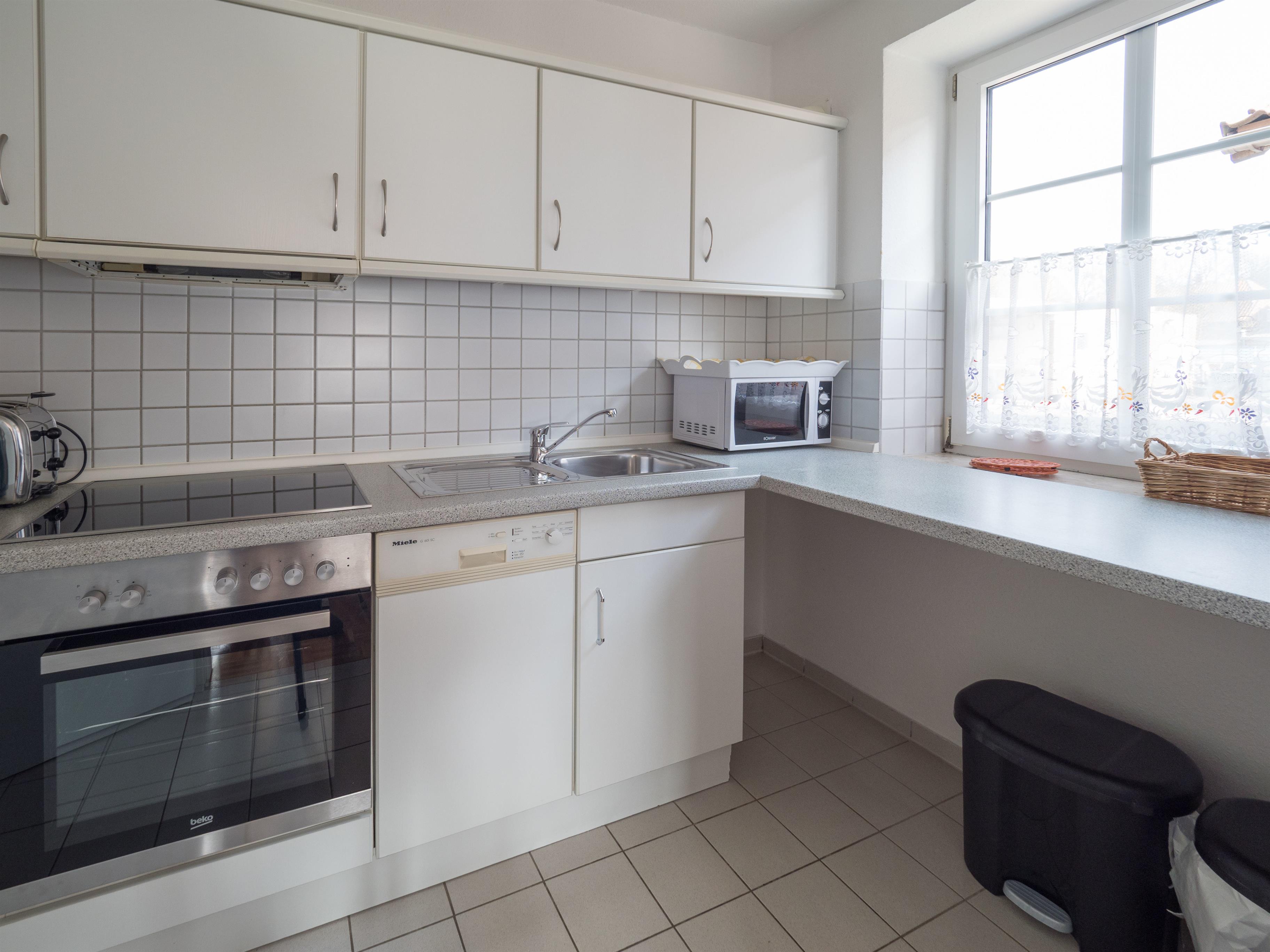 Die Wohnung hat 2 Schlafräume, jeweils mit Doppelbetten, Kinderbetten und Hochstühle auf Wunsch kostenlos, Duschbad, Flur, Wohnraum mit Schlafcouch und SatTV, Radio. Eine volleingerichtete Küche mit Geschirrspüler, Mikrowelle, 4-Platten Herd mit Backofen, Kühlschrank mit Gefrierfach, Wasserkocher, Toaster und Kaffeemaschine ist vorhanden.