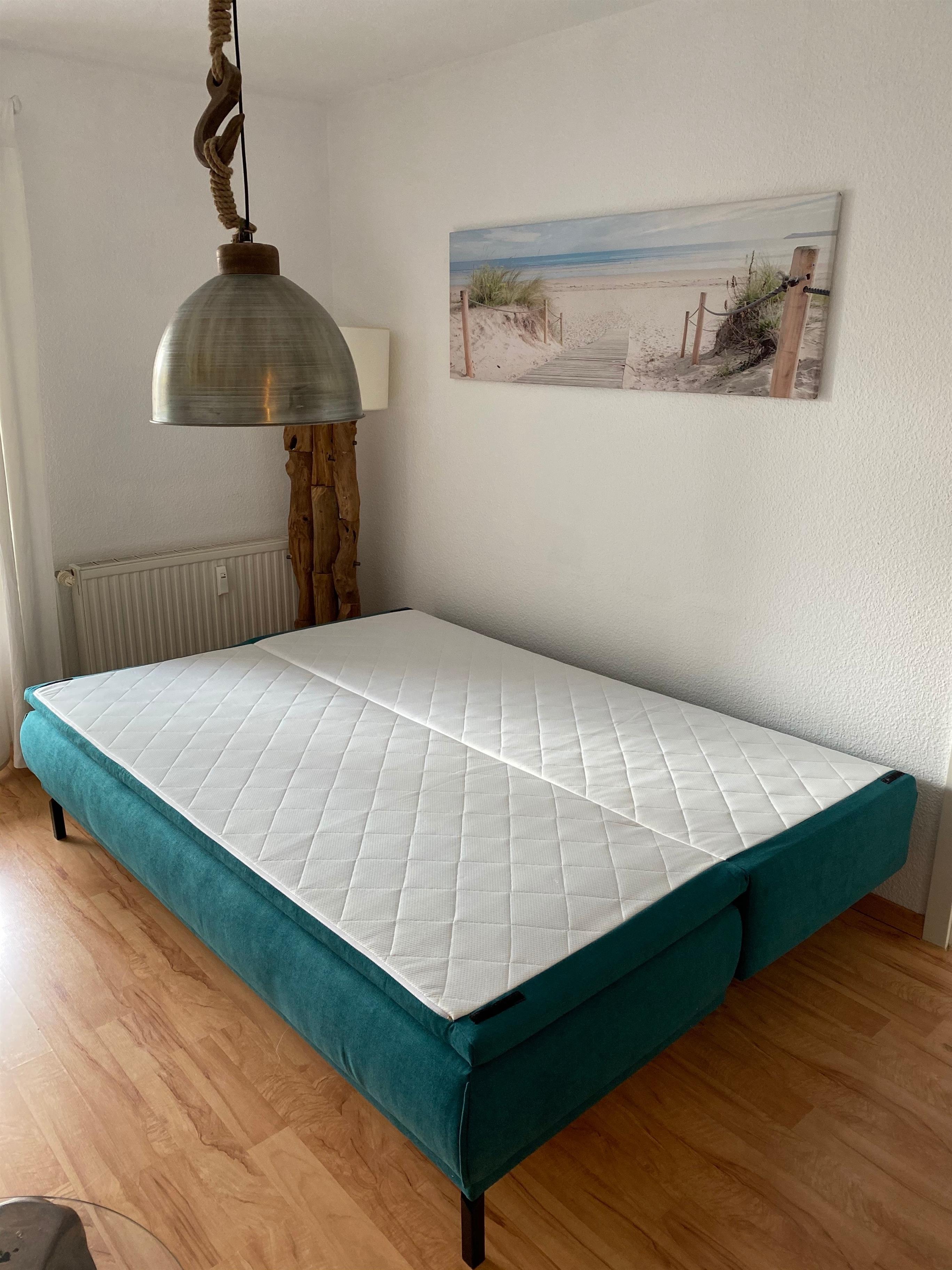 Neben einer gut ausgestatteten Küche, einem großzügig geschnittenen Badezimmer und einem geräumigen Hausgang gibt es den gemütlichen Wohnraum mit anschließendem Schlafzimmer. Unsere Fehmarn-Oase bietet mit Ihrer Wohnfläche von 50 m² für bis zu 4 Personen ausreichend Platz. Neben einem Boxspringbett (180x200 cm) befindet sich im Wohnraum eine bequeme Schlafcouch (150x200 cm), die auch für Langschläfer einen guten Liegekomfort bietet. Alle Fenster sind mit insektenschutz und Plissee-Sichtschutz ausgerüstet.