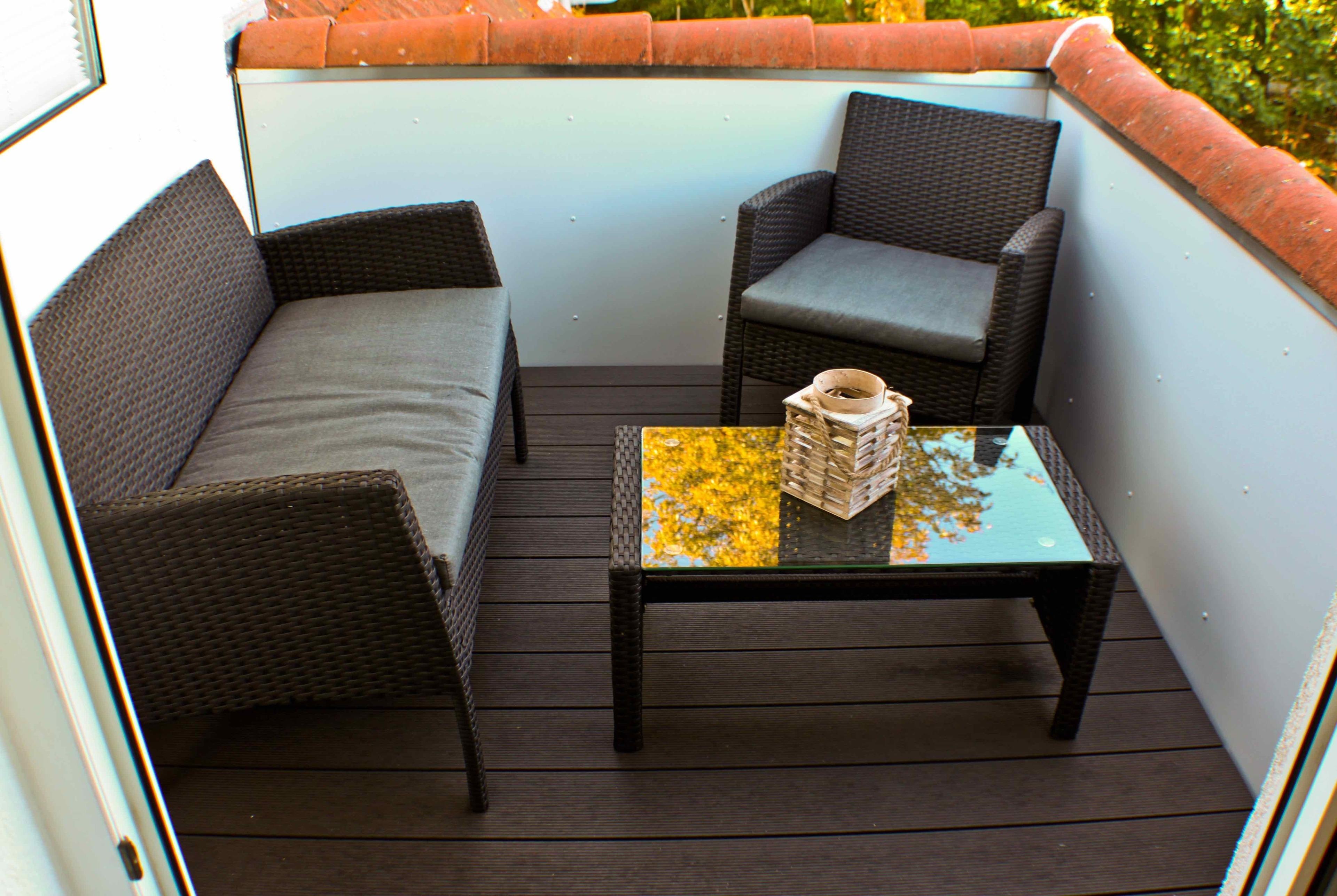 Nach dem Eintritt in die Wohnung gelangt man über einen kleinen Flur sowohl in das neu renovierte, mit Fußbodenheizung ausgestattete Badezimmer, als auch in das geräumige Wohn- / Esszimmer. Auch die modern ausgestattete Einbauküche lädt nicht nur zum Kochen, sondern auch zum Verweilen ein. Ein hübscher Tisch mit zwei Stühlen sorgt hier für die entsprechende Gemütlichkeit. Auf dem Balkon, der über das Wohnzimmer zu erreichen ist, kann man den Nachmittag ausklingen lassen oder mal eine Zigarette rauchen. Bei Regen besteht für die Raucher die Möglichkeit, vor der Haustür an einem kleinen Tisch, geschützt durch den Laubengang ihrem Genuss nachzugehen.