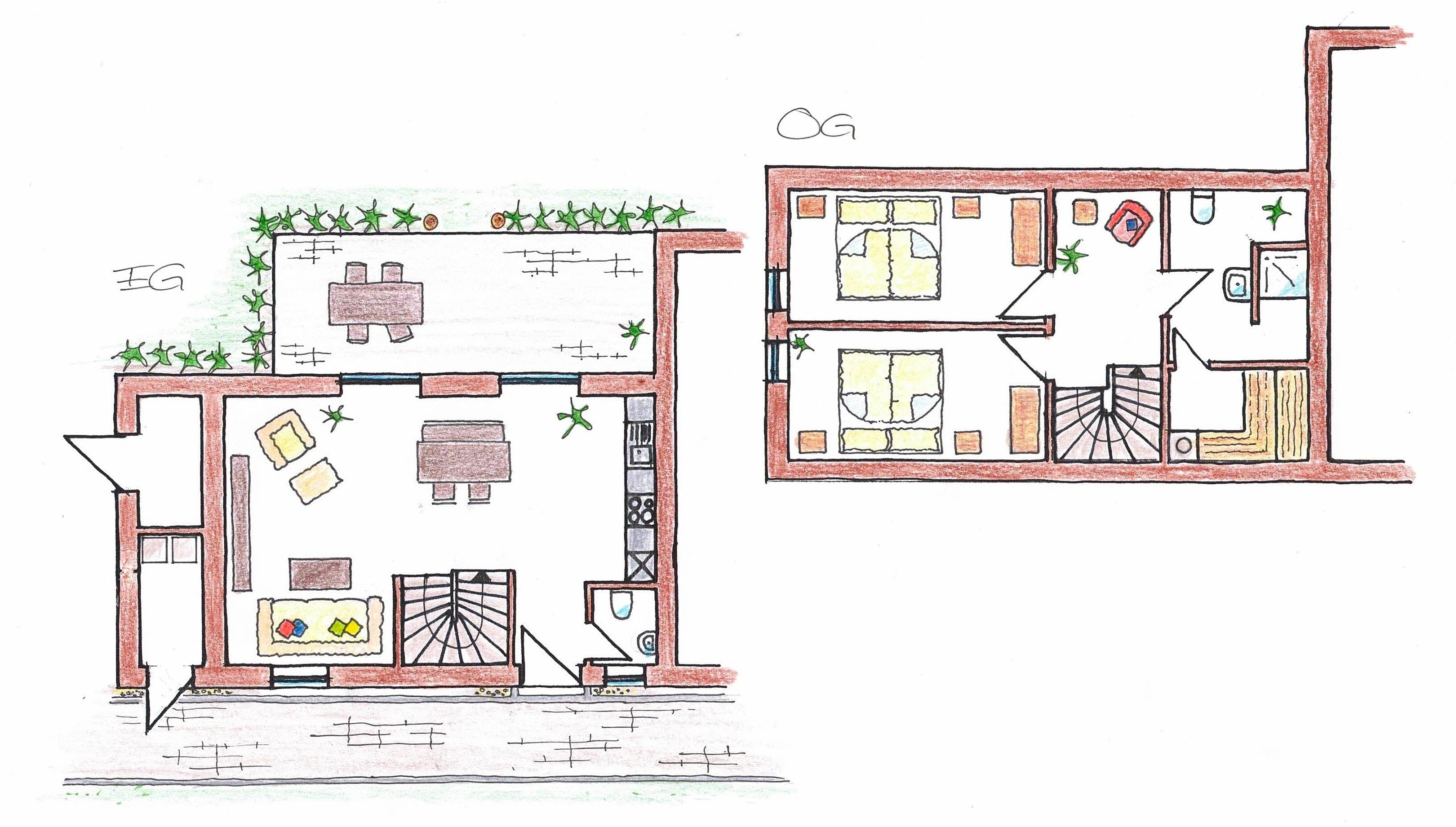 Sie liegen im Obergeschoss und sind mit Doppelbetten ausgestattet.