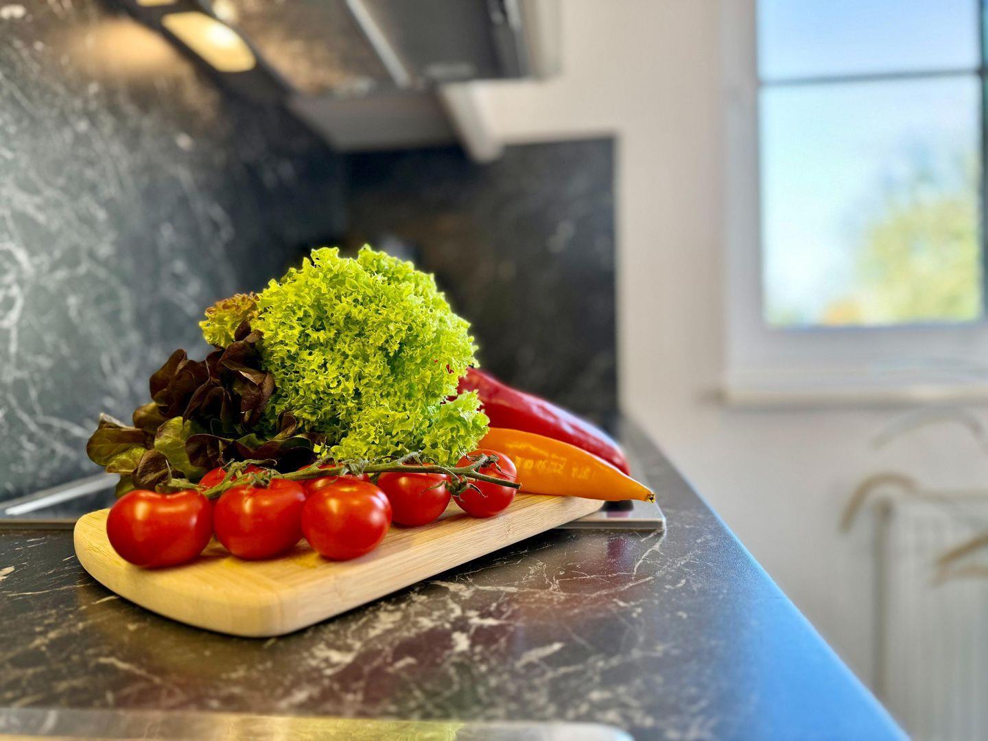 In dieser Wohnung finden Sie eine moderne und gleichzeitig gemütliche Atmosphäre vor. Die Fernsehecke ist mit Sofa, Sesseln und Couch eingerichtet. Der geräumige Küchenbereich ist mit allen notwendigen Küchenutensilien ausgestattet.