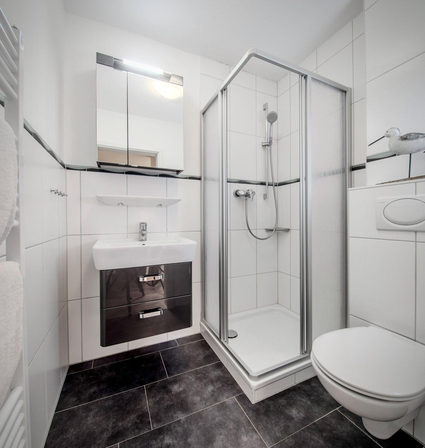 Das Bad mit Fenster ist mit Dusche und WC ausgestattet. Alle Verbrauchskosten und der W-Lan Zugang sind bereits im Mietpreis enthalten. Die Betten werden bezogen und Handtücher werden auch gestellt.