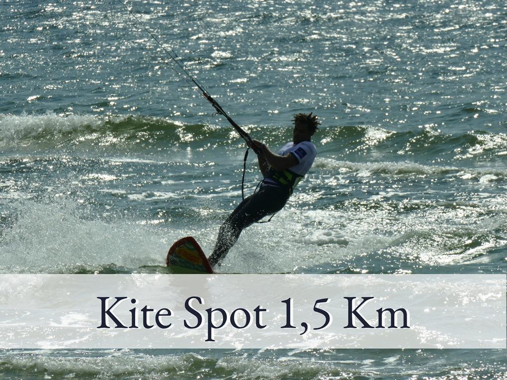 Highlight der großzügigen Wohnung ist der Wohn-/Ess-/Küchenbereich mit seinen großen Panoramafenstern, mit Blick auf die Felder und Kites am Horizont. Vom Esstisch oder dem gemütlichen Sofa aus, genießen Sie den Blick in die Natur. Hier steht Ihnen auch ein SAT TV zur Verfügung. Die Küche ist mit Geschirrspüler, Herd mit Ceran-Kochfeld (4 Platten) und Backofen, Dunstabzugshaube, Kühl-Gefrierkombi, einer weiteren Kühl-Gefrierkombi (falls die Wohnung voll belegt ist und der Kühlraum nicht reichen sollte), Mikrowelle, Toaster, Mixer, Kaffeemaschine, Wasserkocher bis hin zur Feinwaage, voll ausgestattet.