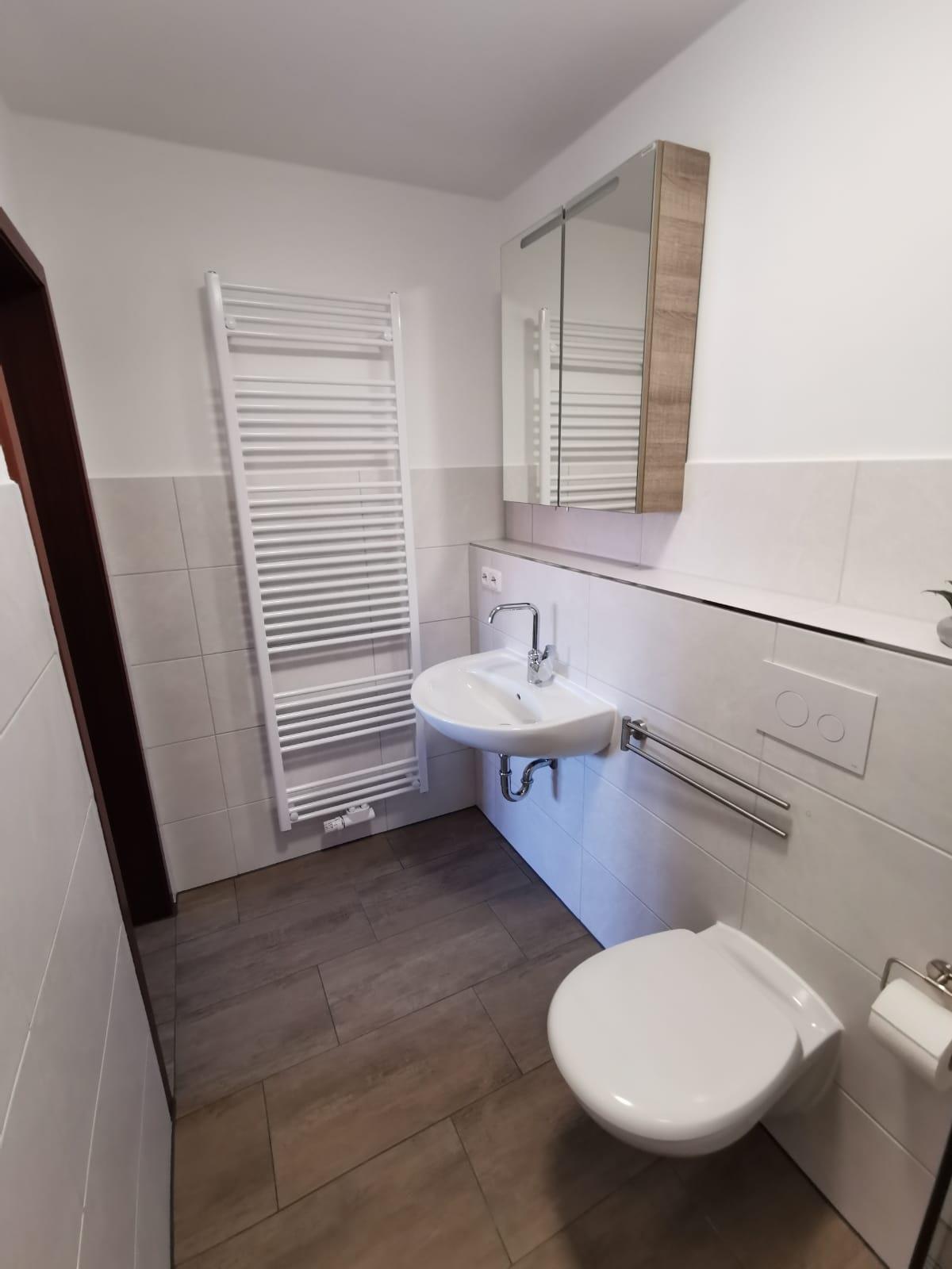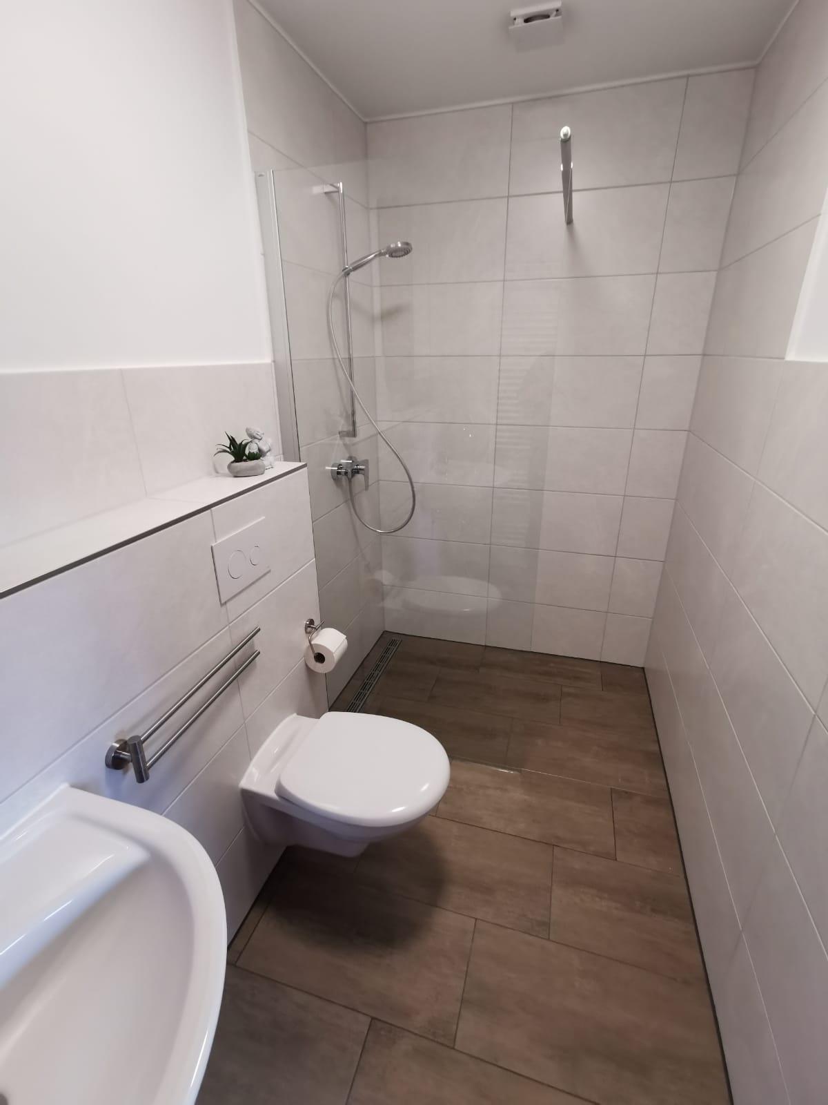 Der 3. Raum, das Bad mit Waschbecken, WC und Duschkabine.
