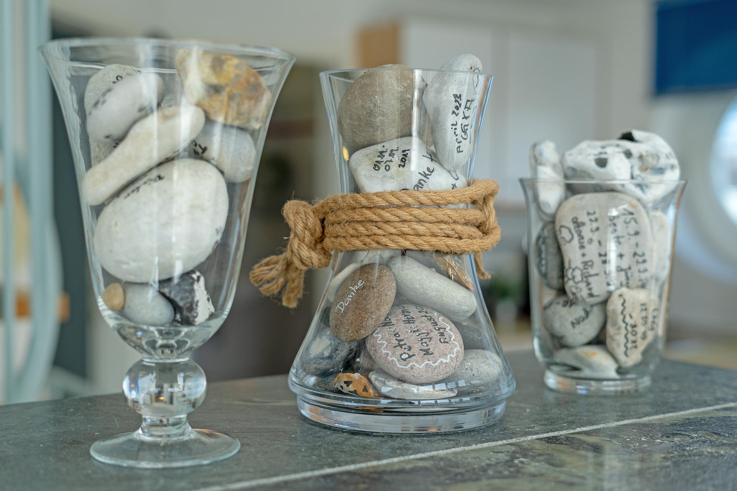 Herzlich Willkommen im blauen Haus. Herzlich Willkommen an einem besonderen Ort! Am Ende einer Sackgasse, direkt am Naturschutzgebiet mit einem fantastischen Blick auf das Meer, die Bucht und die Fehmarnsundbrücke. Zwei Balkone zum Sonnen, Essen und Genießen im Sommer. Ein knisterndes Kaminfeuer im Winter - ein Aufenthalt im Ferienhaus Meerkieker ist zu jeder Zeit ein Erlebnis. Der Eingangsbereich befindet sich im Tiefgeschoss, gleich neben dem PKW-Stellplatz und der Garage. Von dort geht es über eine Wendeltreppe nach oben in den hellen Wohn- und Essbereich mit offener Küche und Zugang zum Balkon. Hier erwarten Sie ein großes Sofa, Sat-TV, Kaminofen sowie ein bequemer Essplatz. Die Küche ist z. B. mit Geschirrspüler, Cerankochfeld, Backofen, Kaffeemaschine und vielem mehr ausgestattet. In diesem Geschoss befindet sich auch ein Schlafzimmer mit Doppelbett (180x200 cm) und ein Duschbad. Über eine weitere Wendeltreppe gelangen Sie zum zweiten Schlafbereich mit zwei Einzelbetten (je 80x200 cm) und einem Vollbad. Sowohl das Dachgeschoss als auch das Erdgeschoss haben einen Balkon mit Meerblick.