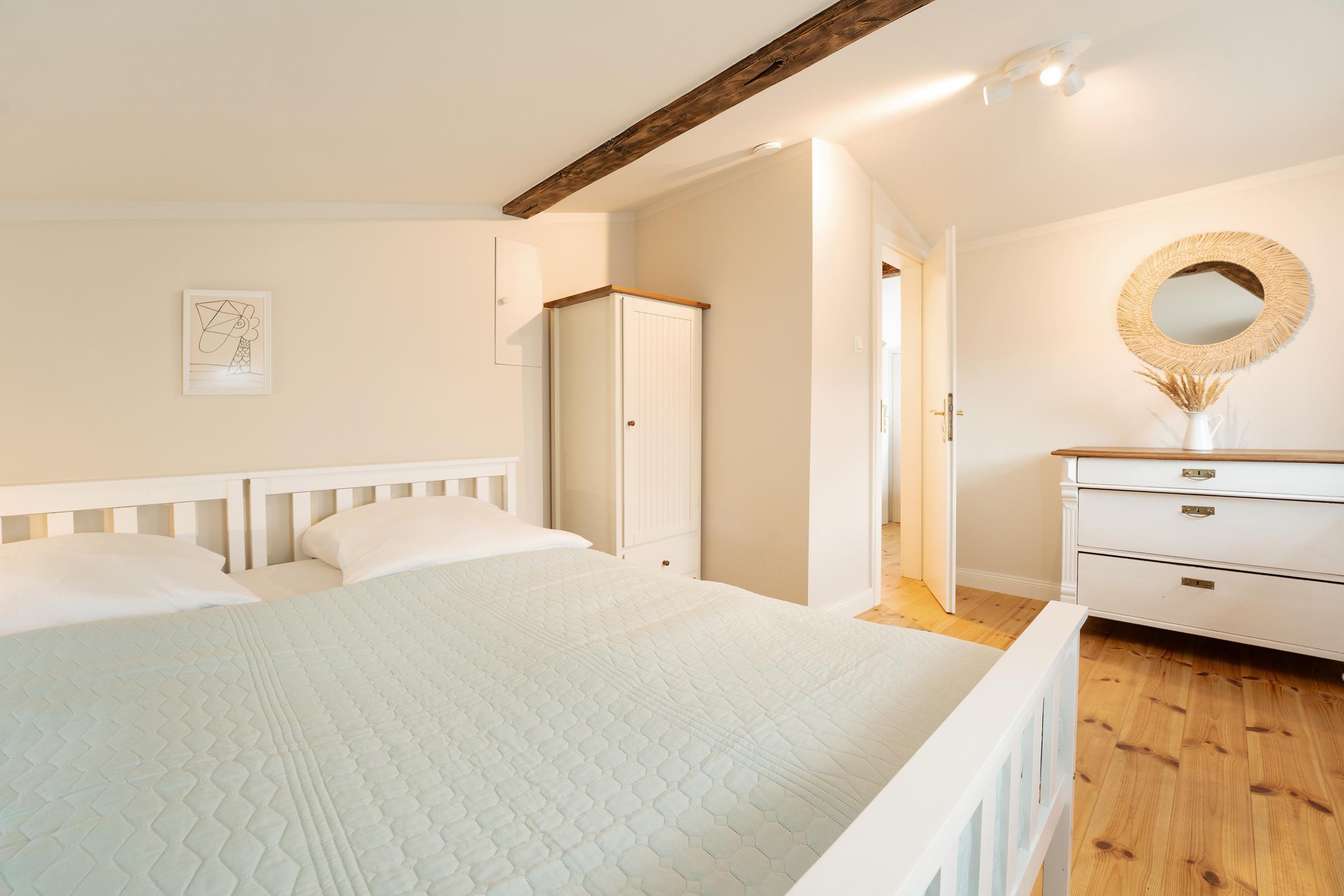 Das Ferienhaus verfügt über drei Schlafzimmer: eines ist mit einem komfortablen Doppelbett eingerichtet, während im zweiten ein gemütliches ausziehbares Einzelbett zur Verfügung steht. Das dritte Schlafzimmer befindet sich als einziges im Obergeschoss und verfügt über zwei Einzelbetten. Alle Räume sind mit viel Liebe zum Detail gestaltet und sorgen für erholsame Nächte. Zwei moderne Badezimmer ergänzen die Ausstattung – eines im Erdgeschoss mit Dusche (Einstiegshöhe 5 cm), WC, Haartrockner und beheizbarem Handtuchhalter sowie ein zweites im Obergeschoss mit bodengleicher Dusche und WC. Eine Sauna rundet das Wohlfühlpaket ab.