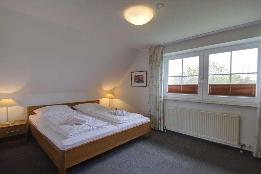 Die Größe des Appartements beträgt 65 qm, es befindet sich im Obergeschoss und hat einen kleinen Balkon, Ausrichtung: Süd/Ost - Golfplatz, 1 großzügiges Wohnzimmer mit einer Sitzgruppe und Esssitzgruppe. 1 Schlafzimmer mit Doppelbett von 2,10 m Länge. 1 Kinder-Schlafzimmer mit Einzelbetten, Bad mit Dusche, Küche mit Spülmaschine und Mikrowelle sowie Waschmaschine. Der mitzubenutzende großzügiger Garten und eigener Sitzecke grenzt direkt am Golfplatz Fehmarn (Bahn 6) Ein Carport und Sportgeräteschuppen befinden sich vor dem Ferienhaus. Besonders geeignet ist die Ferienwohnung für Golfer. Unsere Gäste erhalten auf dem Golfplatz einen Vorzugssonderpreis. Sie können im voraus eine "Unlimited Flatrate" zu einem Superpreis buchen. Unser besonderer Service: Die Bettwäsche, Handtücher und Geschirrtücher sind für den Erstbezug inclusive. Das Doppelbett ist bereits bezogen. Als Gäste des Ferienparks können Sie die weiteren Vorteile nutzen (Schwimmbad, Sauna, Freizeitangebote, Animation und Wellnessangebote). Unsere verschiedenen Restaurants bieten Ihnen auch Frühstücksservice, Halb- oder Vollpension.