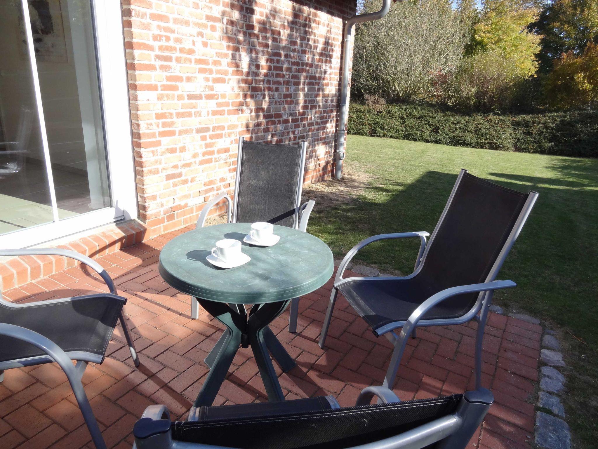 Die Ferienwohnung im Erdgeschoß ist mit ca. 56 qm für bis zu 4 Personen ausgelegt und verfügt über einen Wohnraum mit Küchenzeile incl. Spülmaschine, ein Bad mit Dusche und zwei Schlafzimmer. Weitere Ausstattungsmerkmale: Sat-TV, Telefon kostenlos ( deutsches Festnetz außer Sondernummern ), PC-Anschluss DSL kostenlos, PKW-Stellplatz, Fahrradstellplatz, Waschmaschinennutzung, eigene Süd-Terrasse.