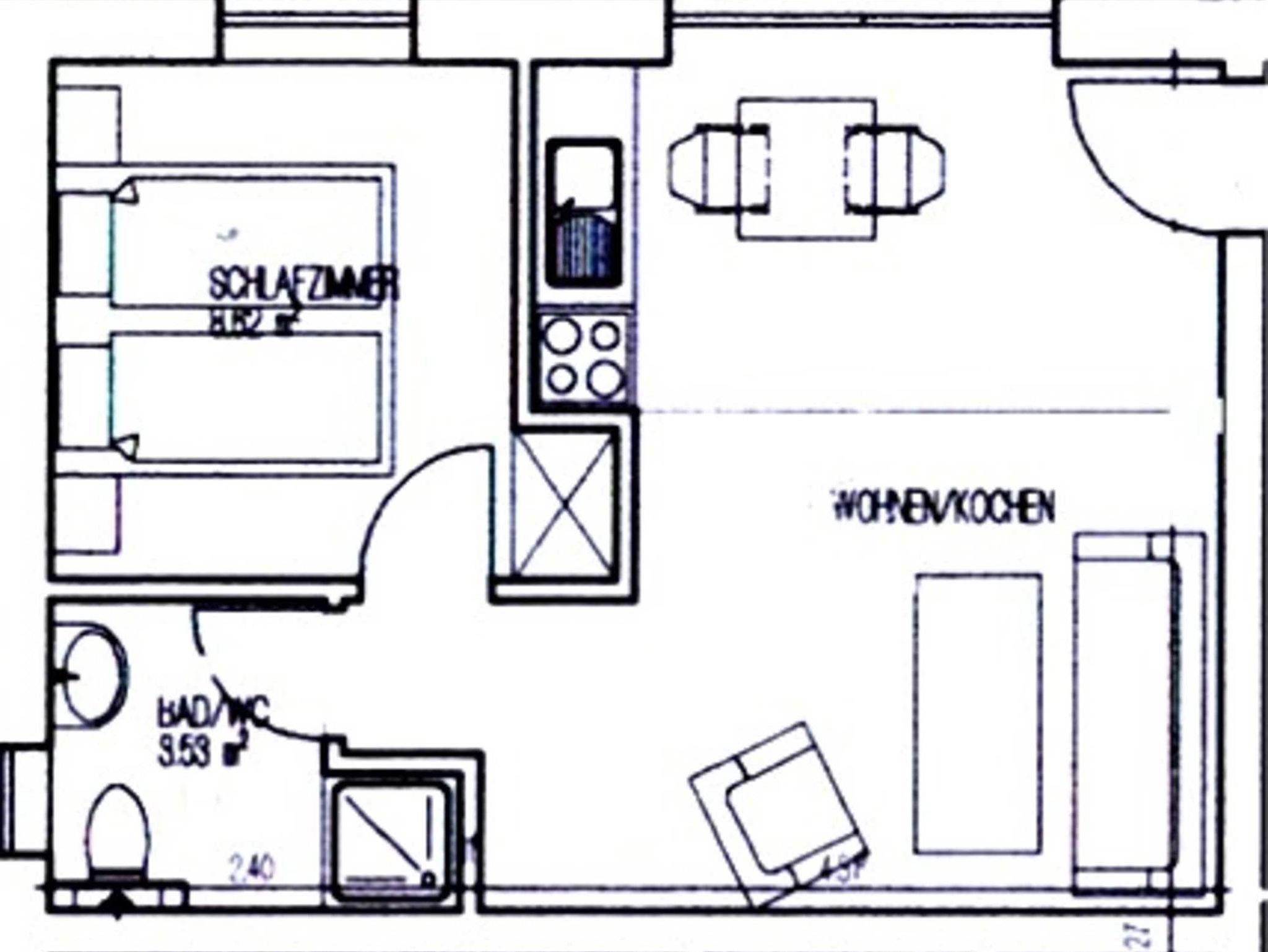 Die Ferienwohnung im Erdgeschoss ist mit ca. 33 qm für 2 Personen ausgelegt und verfügt über einen Wohnraum mit Küchenzeile, ein Bad mit Dusche und ein Schlafzimmer. Weitere Ausstattungsmerkmale: Sat-TV, Telefon kostenlos ( deutsches Festnetz außer Sondernummern ), PC-Anschluss DSL kostenlos, PKW-Stellplatz, Fahrradstellplatz, Waschmaschinennutzung, eigene Terrasse.