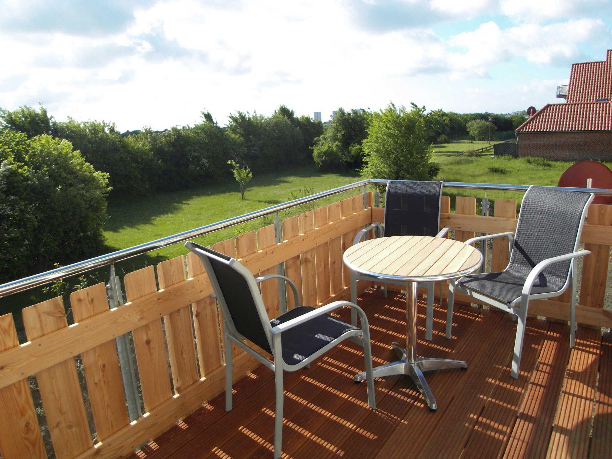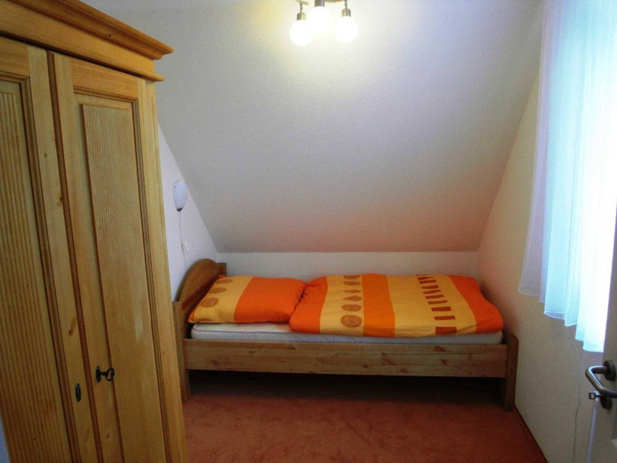 Die Ferienwohnung im Obergeschoss ist mit ca. 50 qm für bis zu 3 Personen ausgelegt und verfügt über einen Wohnraum mit Küchenzeile incl. Spülmaschine, ein Bad mit Dusche und zwei Schlafzimmer. Der große Balkon ist zum Osten ausgerichtet. Sie können von morgens bis mittags die Sonne genießen. Weitere Ausstattungsmerkmale: Sat-TV, Telefon kostenlos ( deutsches Festnetz außer Sondernummern ), PC-Anschluss DSL kostenlos, PKW-Stellplatz, Fahrradstellplatz, Waschmaschinennutzung.