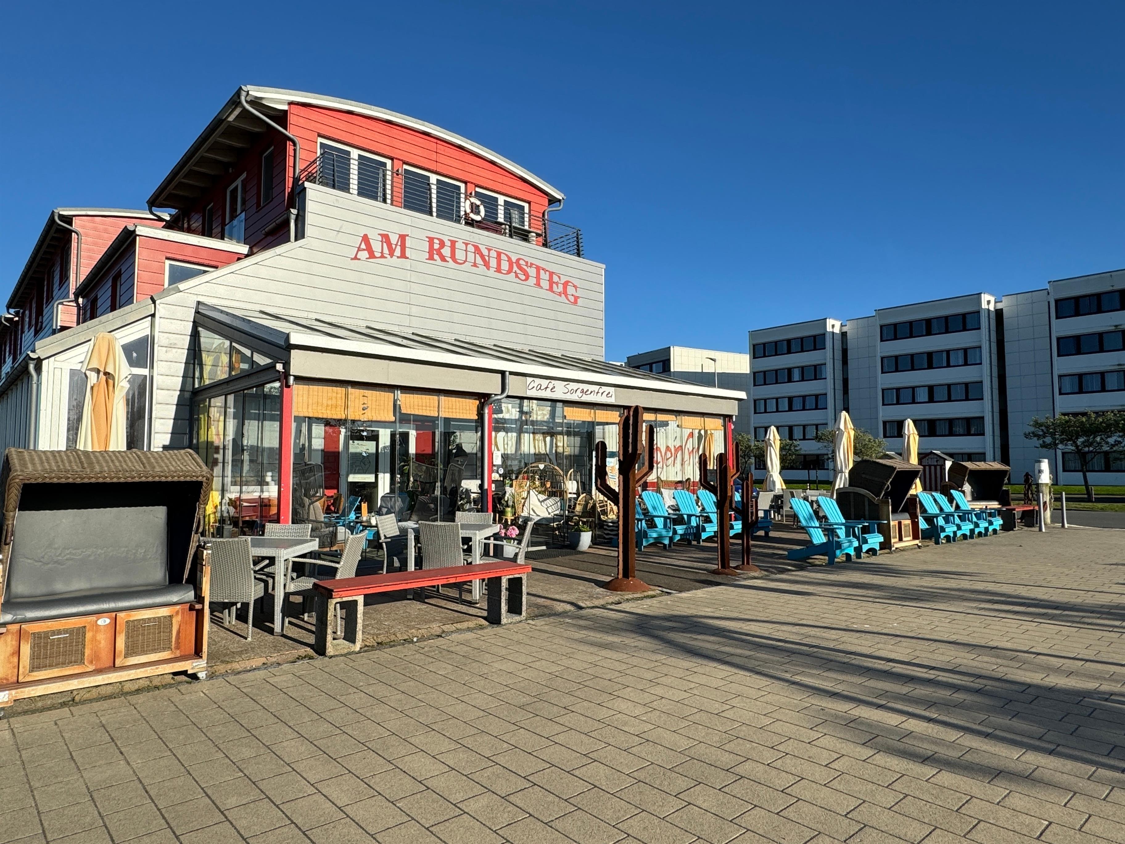 Im Yachthafen befinden sich u.a. ein Restaurant und ein kleines Geschäft, in dem man Brötchen und Zeitungen bekommt.