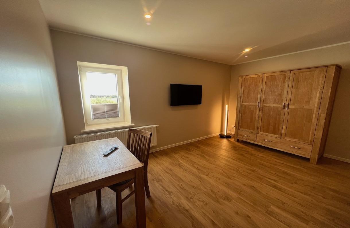 Alter Speicher (62qm): Eine besondere Wohnung an einem besonderen Ort. Die Wohnung befindet sich im ersten Stock der Scheune. Wo früher Heu und Stroh gelagert wurden, finden heute vier Personen den perfekten Platz für ein Bauernhof-Erlebnis. Sie hat zwei separate Schlafzimmer, Duschbad mit WC, eigene Waschmaschine und Trockner, eine voll ausgestattete Küche und einen Wohnraum mit Esstisch, Sofagarnitur, Flachbild-TV, DVD-Player usw. Die modern renovierte Wohnung ist vom DTV mit vier Sternen ausgezeichnet.