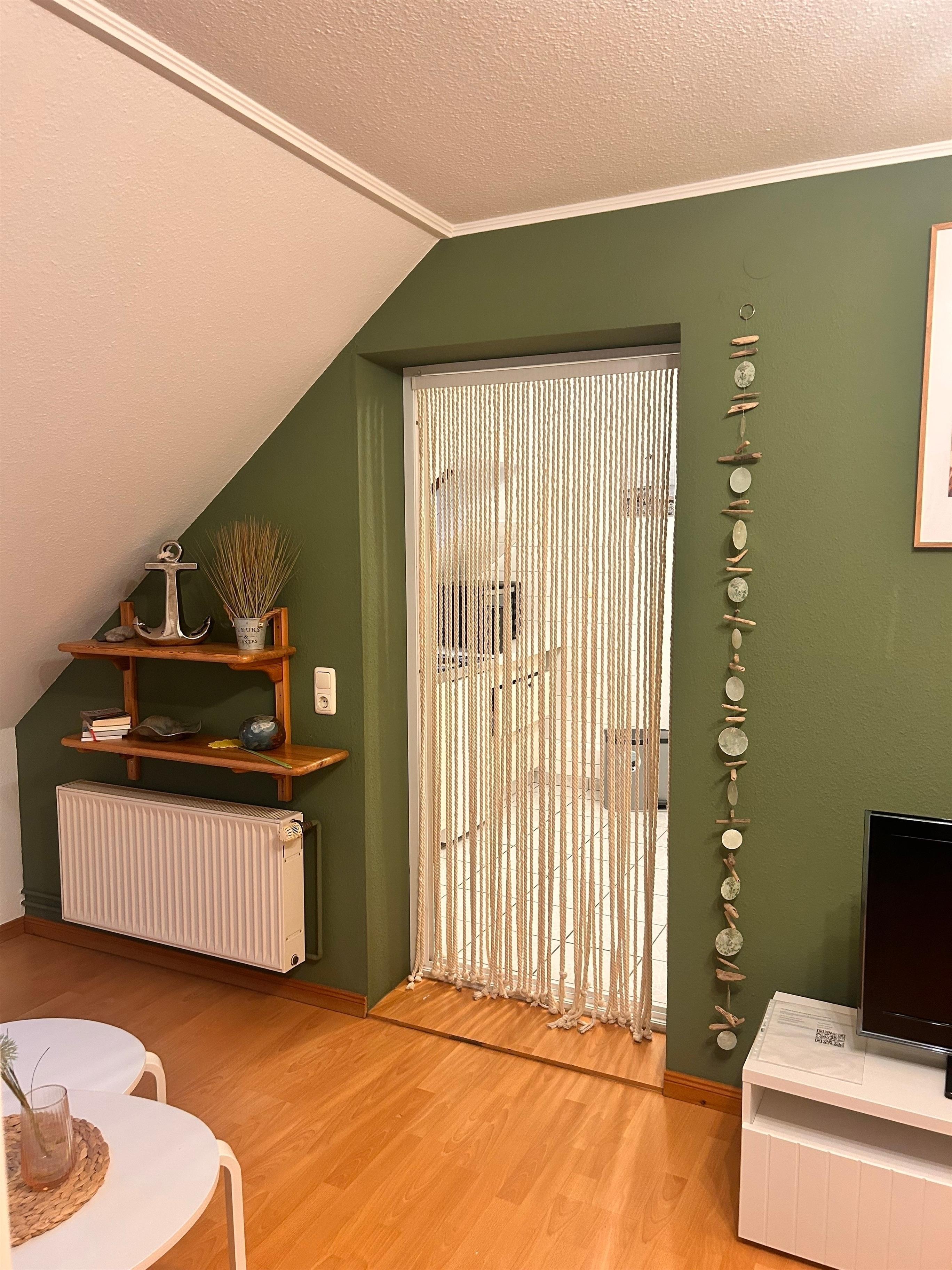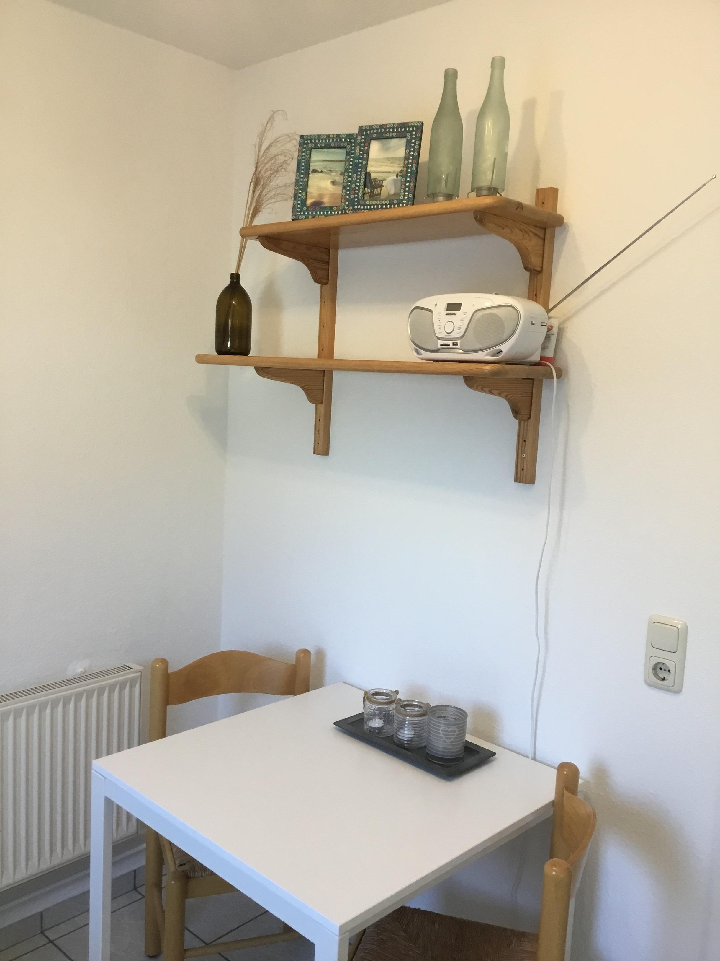Die Ferienwohnung liegt im Obergeschoss und ist für 2 Personen eingerichtet. Im gemütliche Wohnzimmer mit Flachbildschirm können Sie wunderbar entspannen und den nächsten Strandtag oder vielleicht eine Fahrradtour quer über die Insel planen. Außerdem ist ein separates Schlafzimmer vorhanden, sowie eine Küche mit Essplatz und ein Duschbad.