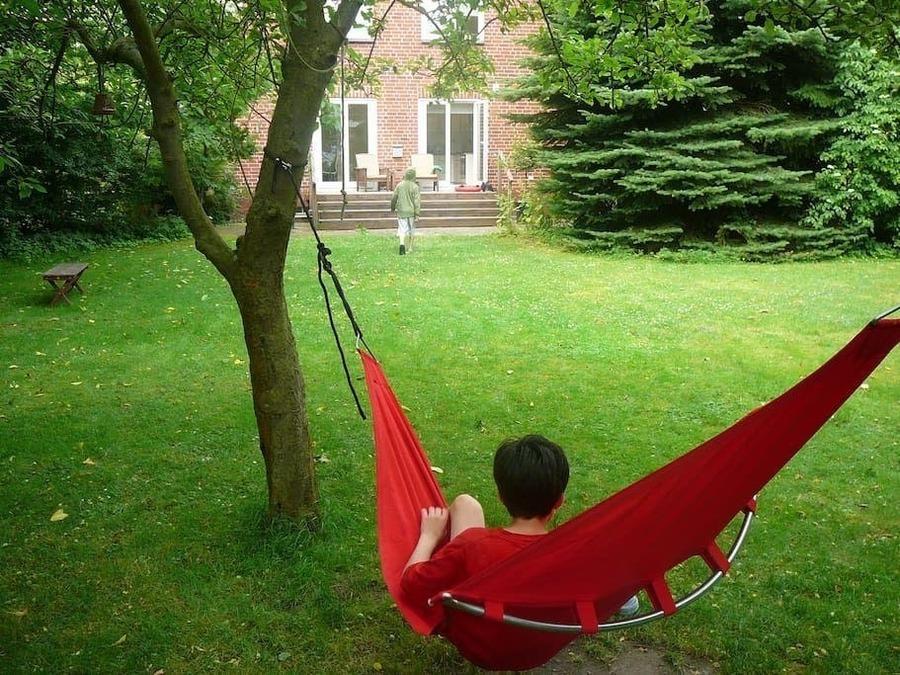 Zwei große Terrassen laden zum verweilen ein. Am Morgen genießen Sie Ihr Frühstück auf der Ost-Terrasse und am Nachmittag und Abend lassen Sie sich von der Sonne auf der Südwest-Terrasse verwöhnen. Der Garten steht Ihnen ganz allein zur Verfügung, mit viel Platz zum Toben, Spielen, Sporten, Grillen oder einfach nur in der Sonne liegen. Auf dem großzügigen Grundstück können die Kinder gefahrlos nach Herzenslust herumtoben.