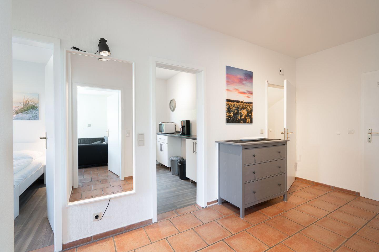 Die Wohnung überzeugt mit einem hellen Wohn- und Essbereich, einer neuen, voll ausgestatteten Küche sowie zwei gemütlichen Schlafzimmern mit jeweils einem Doppelbett. Für eine fünfte Person kann im Wohnzimmer ein komfortables Klappbett bereitgestellt werden. Ein modernes Duschbad sorgt für zusätzlichen Komfort.