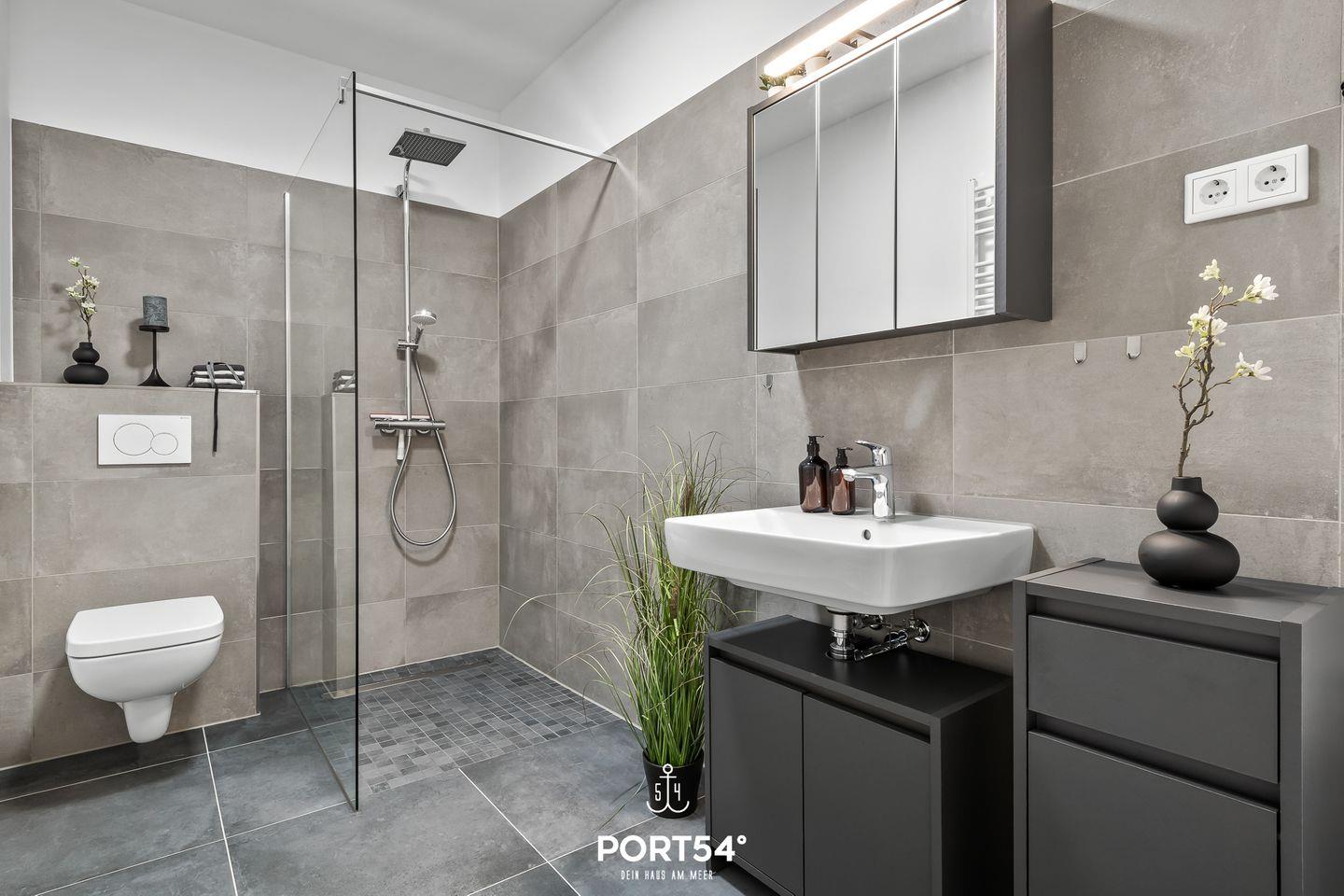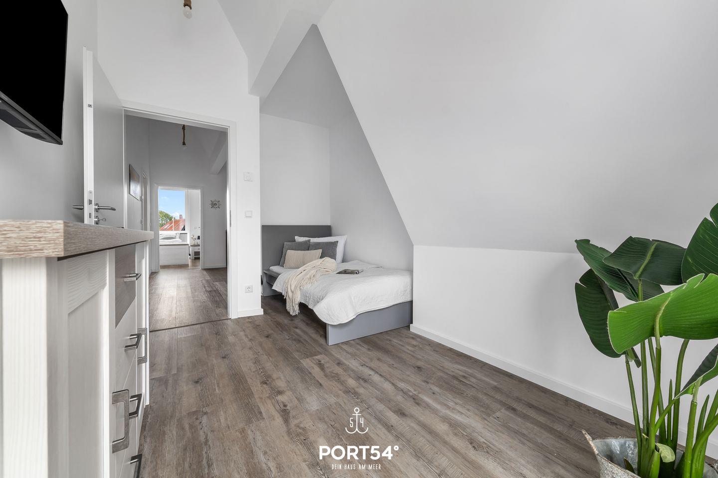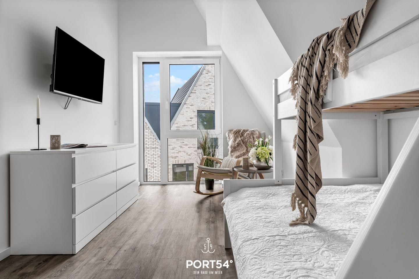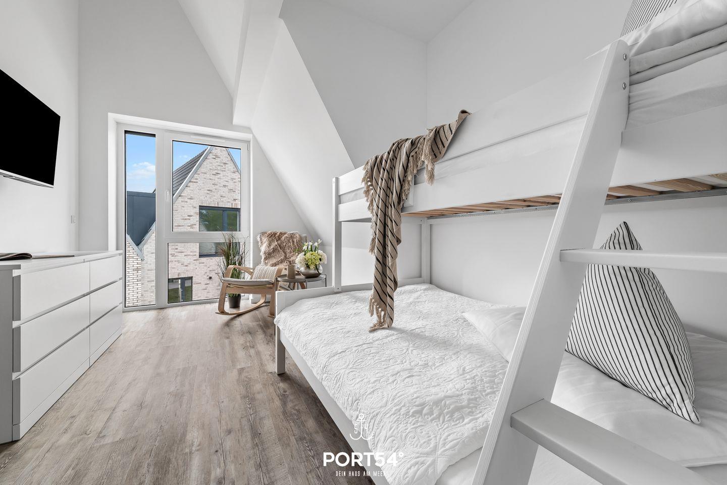 Im Obergeschoss erwarten Sie drei Schlafzimmer ( erstes Schlafzimmer mit Doppelbett 180x200, zweites Schlafzimmer mit einem Etagenbett, wobei die obere Matratze 90x200 misst und die Untere 120x200, drittes Schlafzimmer ein Einzelbett (100x200) sowie das luxuriöse Badezimmer mit Finnischer Sauna.