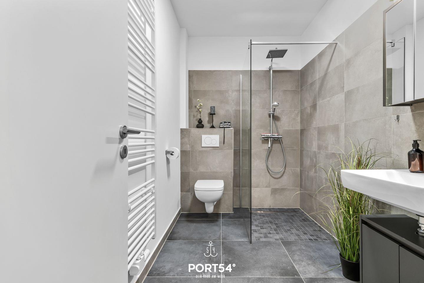Im Erdgeschoss befindet sich der Wohn- Essbereich sowie das lichtdurchflutete Herz des Hauses - der Wohnbereich mit Zugang zur Terrasse und ein Badezimmer mit ebenerdiger Dusche.
