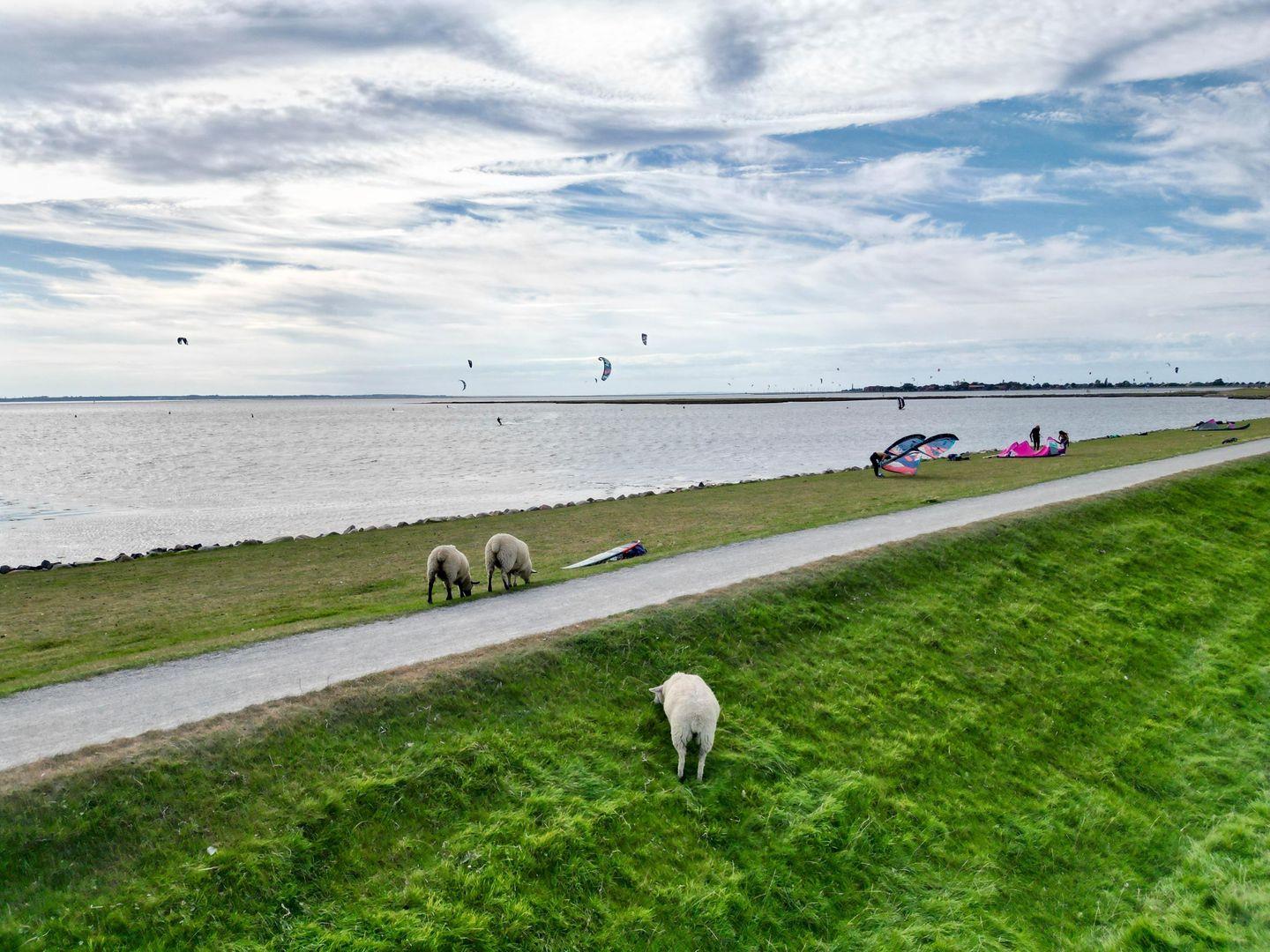 Das Stehrevier der Orther Reede erreichst Du fußläufig und ist DAS Paradies für Kiter, Surfer und Stand-Up-Paddler. Zwei Kiteschulen gibt es in unserer Nachbarschaft. Der Deich vor der Tür lädt zum Fahrradfahren und Spazieren ein. Der bei Kindern und Eltern sehr beliebte Naturstrand Gold ist gerade mal 2,9 km entfernt. Und abends kriegst Du frischen Fisch in der legendären Aalkate, oder Du streckst im Lütten gleich bei uns vor der Tür einfach die Füße in den Sand und genießt die einzigartigen Sonnenuntergänge. Willkommen an der Waterkant!