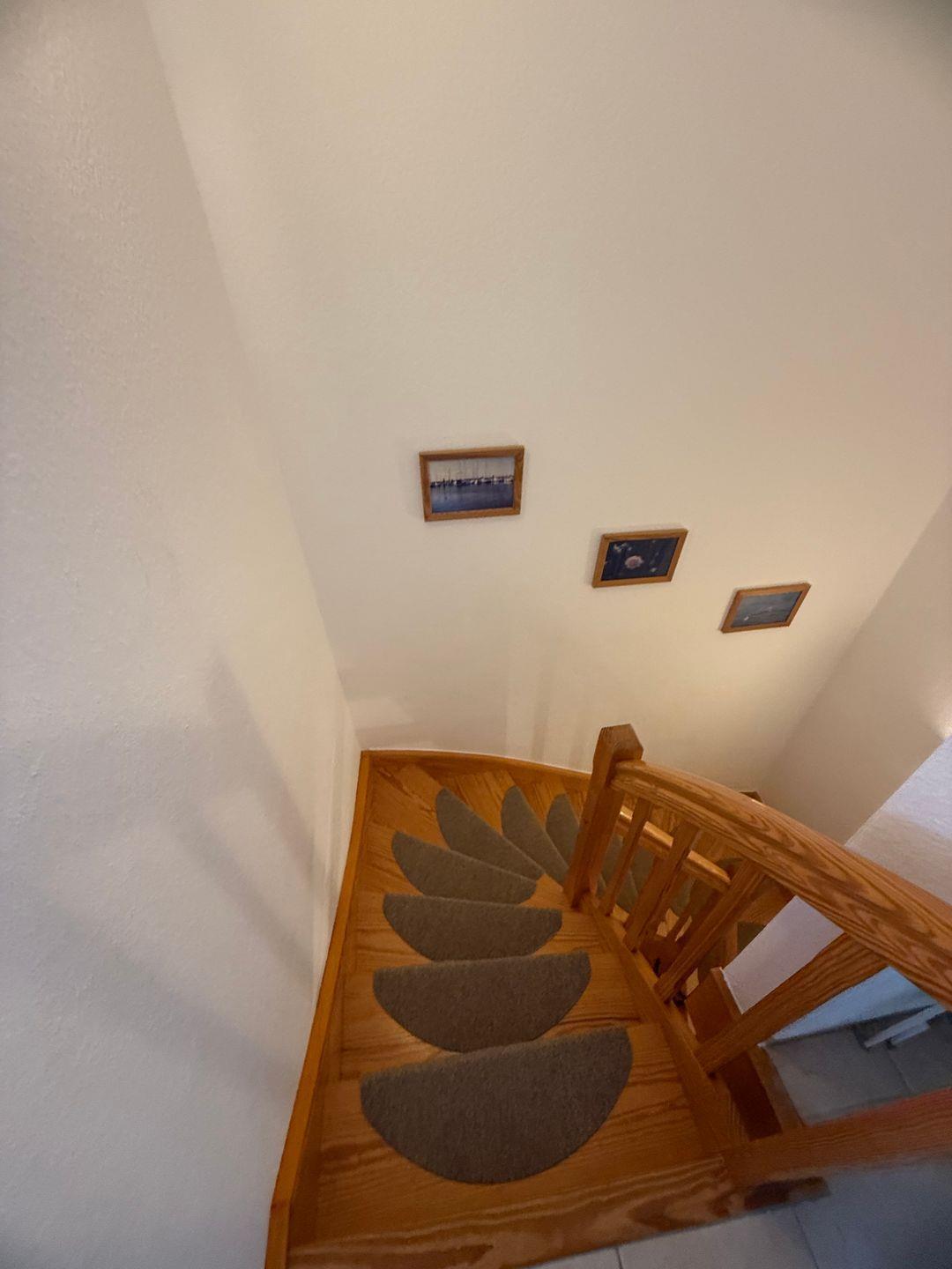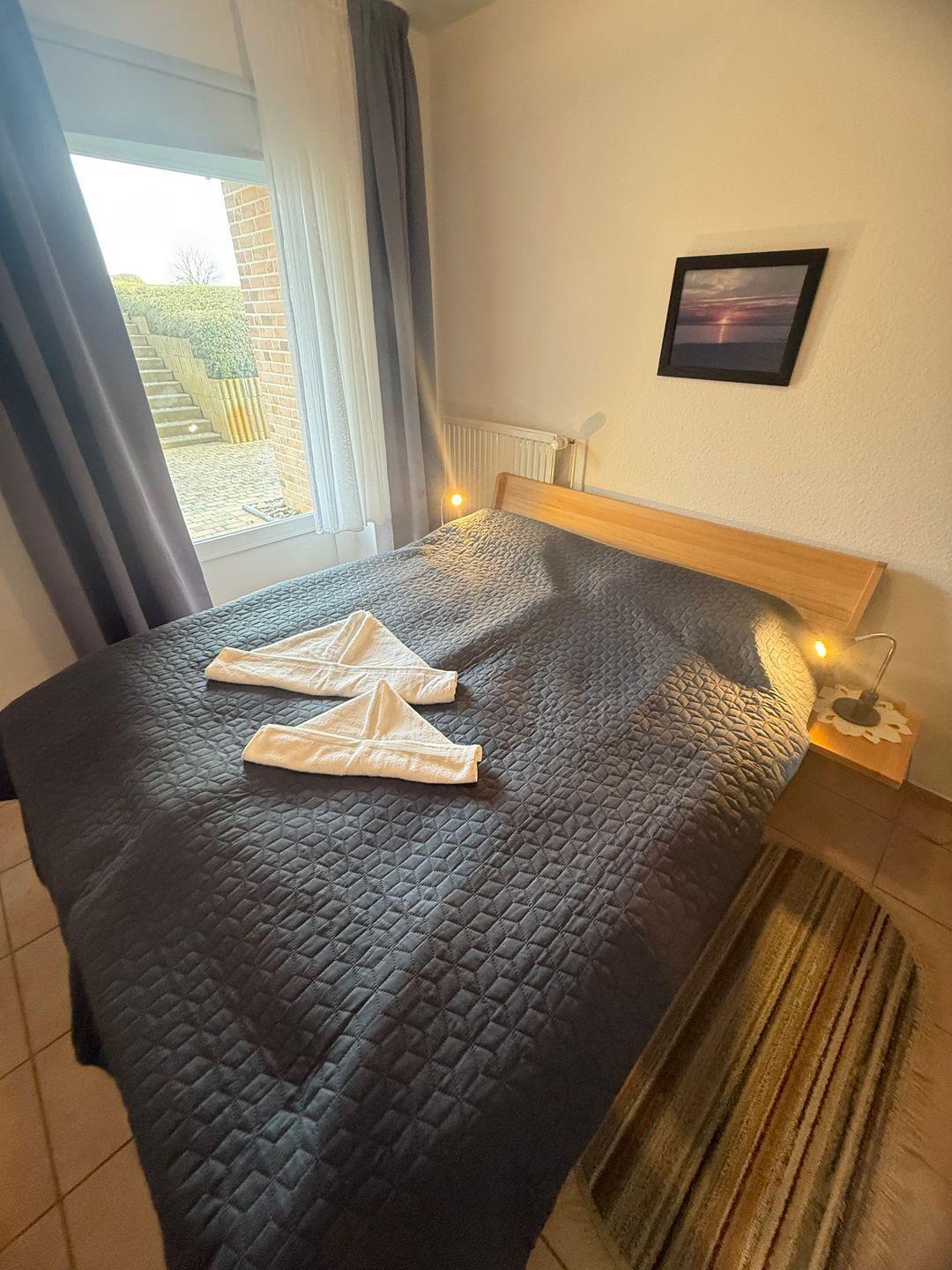 Im Souterrain finden Sie zwei Schlafräume, das Duschbad mit Waschmaschine und einem Abstellraum. Das Schlafzimmer mit einem Doppelbett 1,60 m breit, 2 Matratzen, verfügt über eine abschließbare Tür mit Zugang zur teilüberdachten Terrasse. Von dort erreichen Sie über eine Treppe die große Spiel- und Liegewiese.