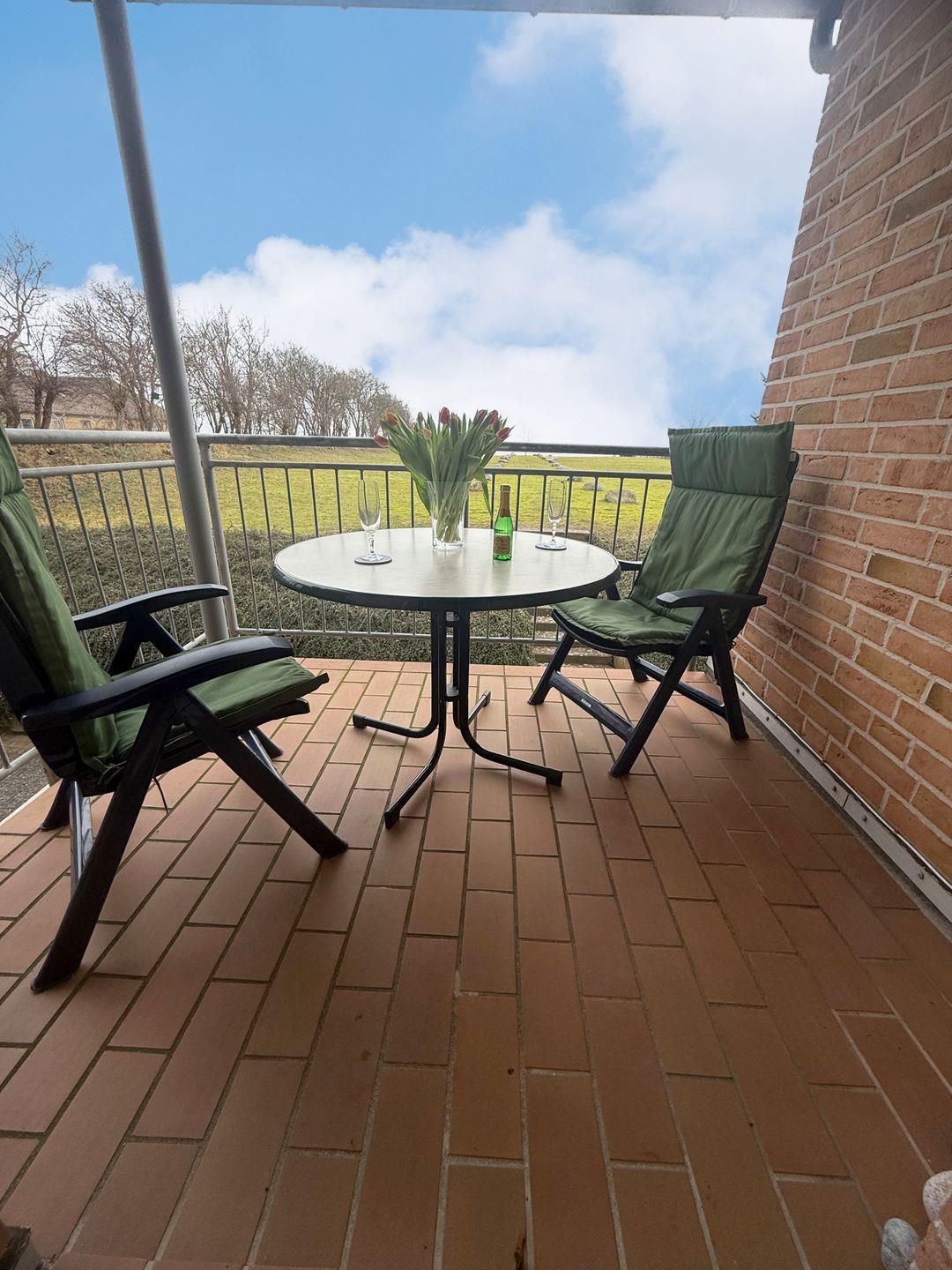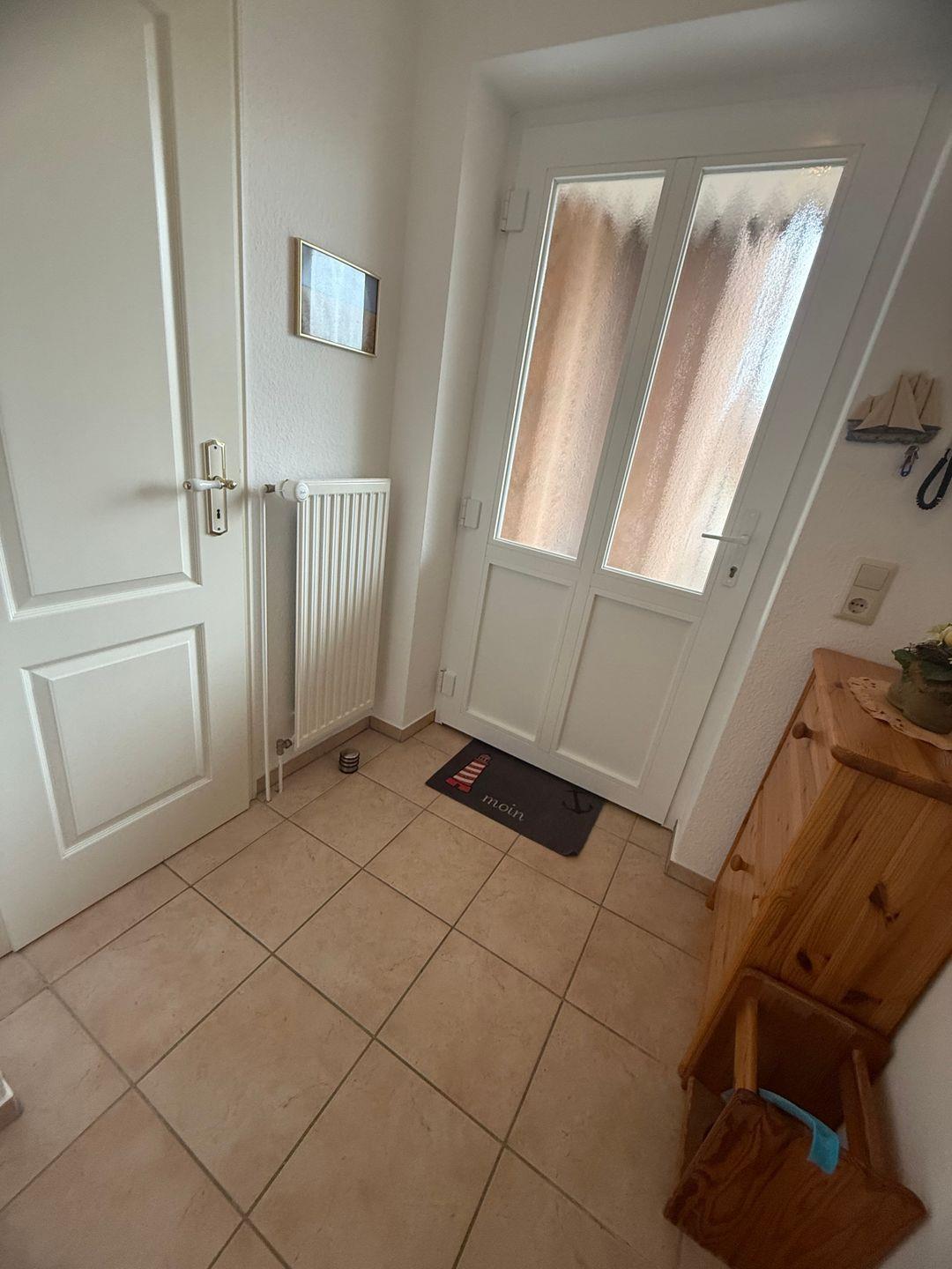 Die Wohnung betreten Sie ebenerdig, mit separatem Eingang. Durch die Diele mit angrenzendem Gäste-WC erreichen Sie den Wohnbereich mit einer voll ausgestatteten separaten Küche. Genießen Sie tolle Sonnenaufgänge über der Ostsee auf dem Balkon.