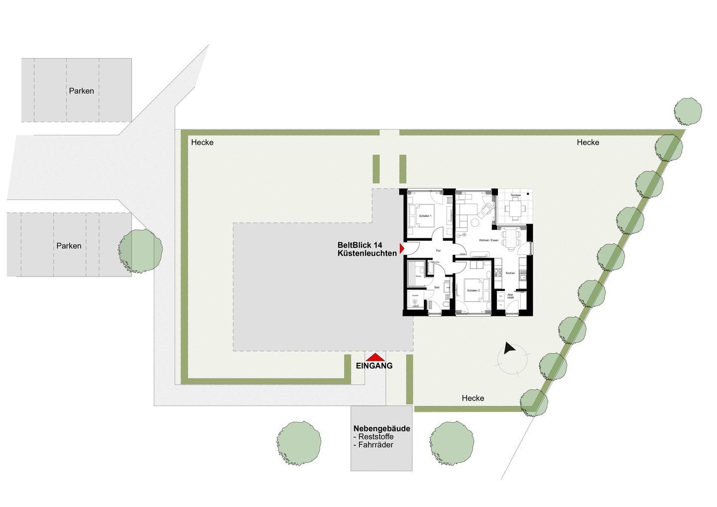Die überdachte Terrasse mit Grill, Sitzgarnitur und Sonnenliegen bietet dir den perfekten Ort für Frühstück in der Morgensonne oder einen entspannten Abend mit Meerblick. Der 230?m² große, umlaufende Garten zur alleinigen Nutzung lädt zum Spielen, Lesen oder Relaxen ein – mit Blick aufs Wasser.