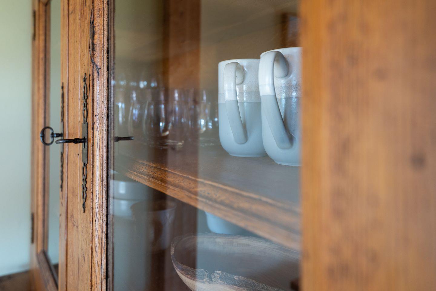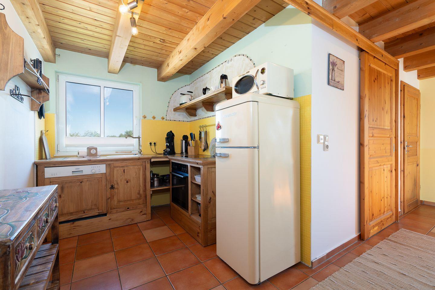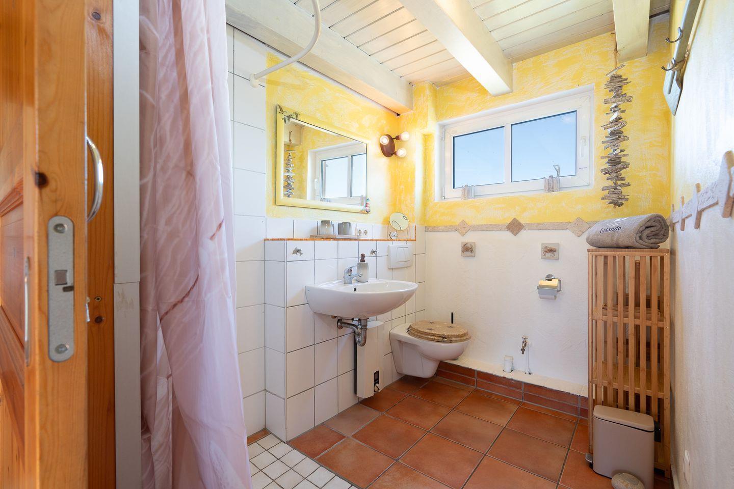 Im Erdgeschoss erwartet Sie eine geschlossene, voll ausgestattete Küche mit Gefrierfach, Wasserkocher und sämtlichen Küchenutensilien – ideal für Selbstversorger. Das gemütliche Wohn- und Esszimmer lädt mit einem großen Esstisch, einem Kamin, einem TV sowie einer bequemen Sofaecke mit Sessel zum Verweilen ein. Von hier aus haben Sie direkten Zugang zur möblierten Terrasse mit Grill – perfekt für laue Sommerabende. Ein modernes Badezimmer mit Fenster, Dusche und Waschbecken rundet das Erdgeschoss ab.