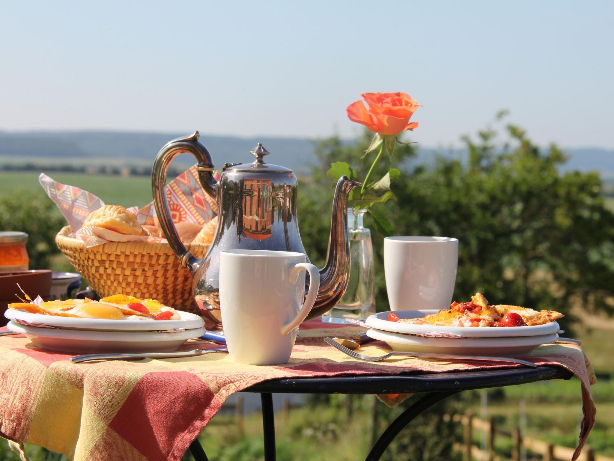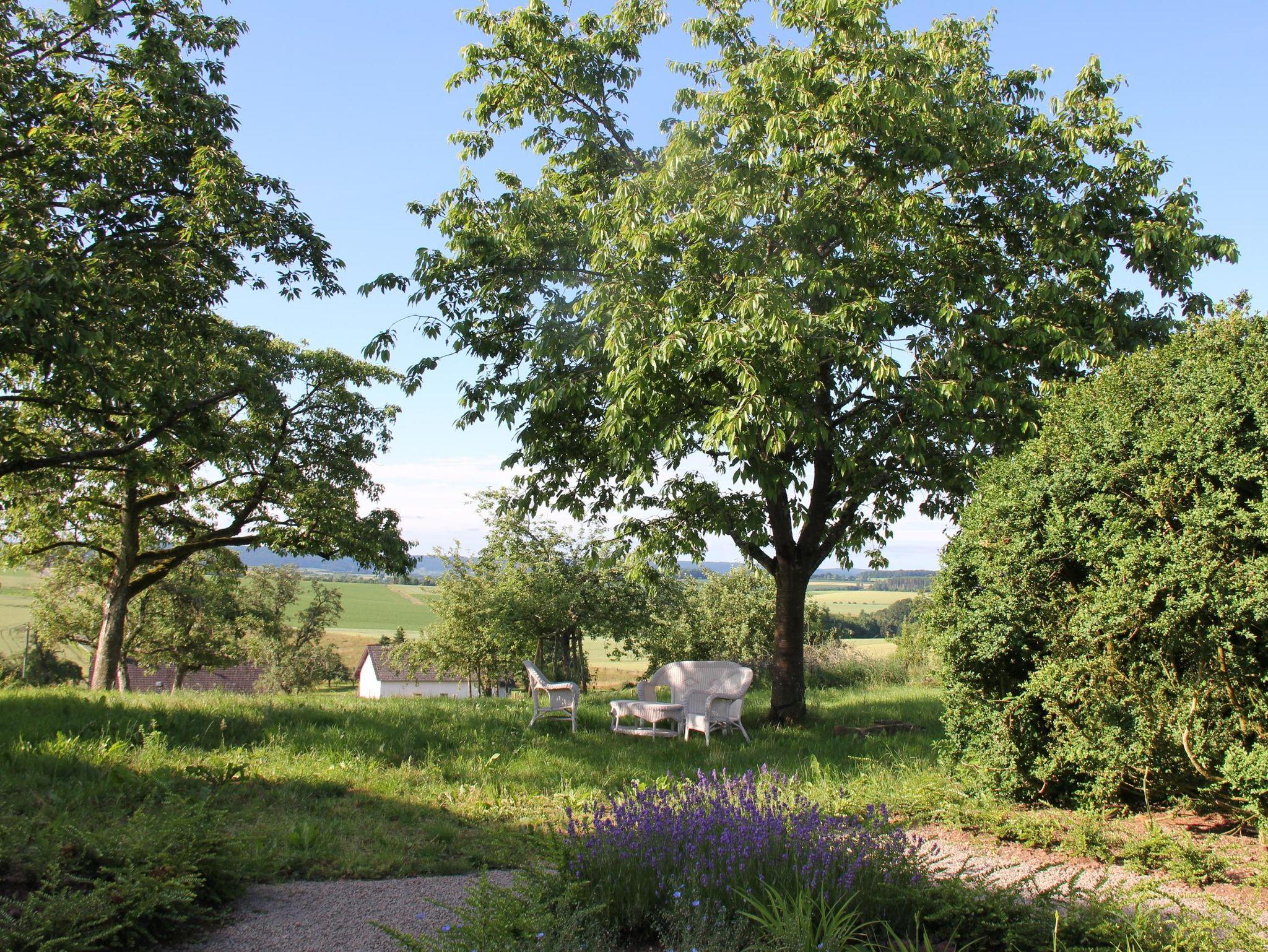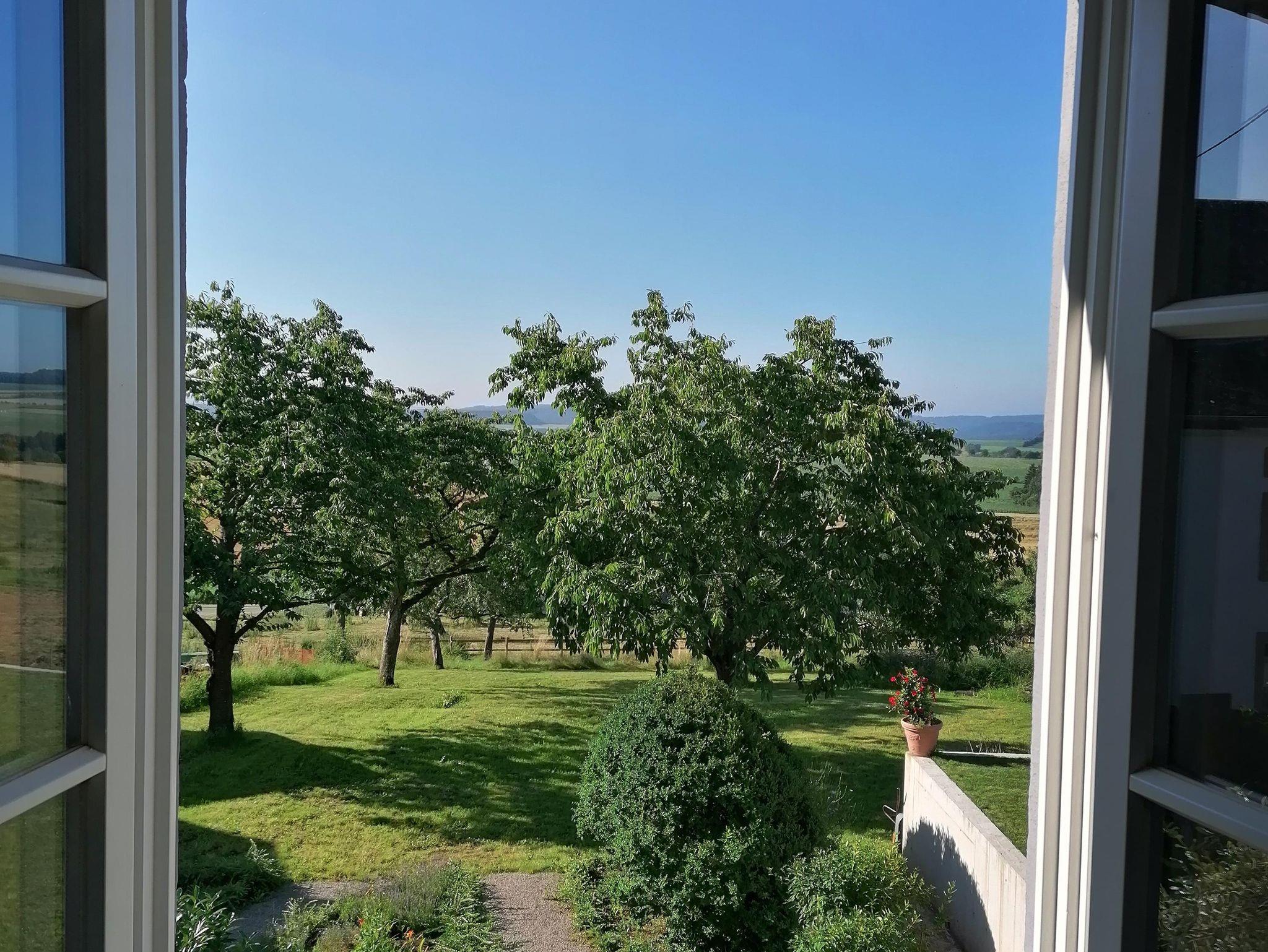 Vom freundlichen, familienbetriebenen Bed & Breakfast schweift der Panoramablick über sechzig Kilometer an Feldern, Wäldern und Tälern. Innen schaffen Balkendecken und originale Möbel den gemütlichen Hintergrund für einen komfortablen Aufenthalt im Gästesalons, zwei Frühstückszimmern und einem Büro im ehemaligen Sattelzimmer.