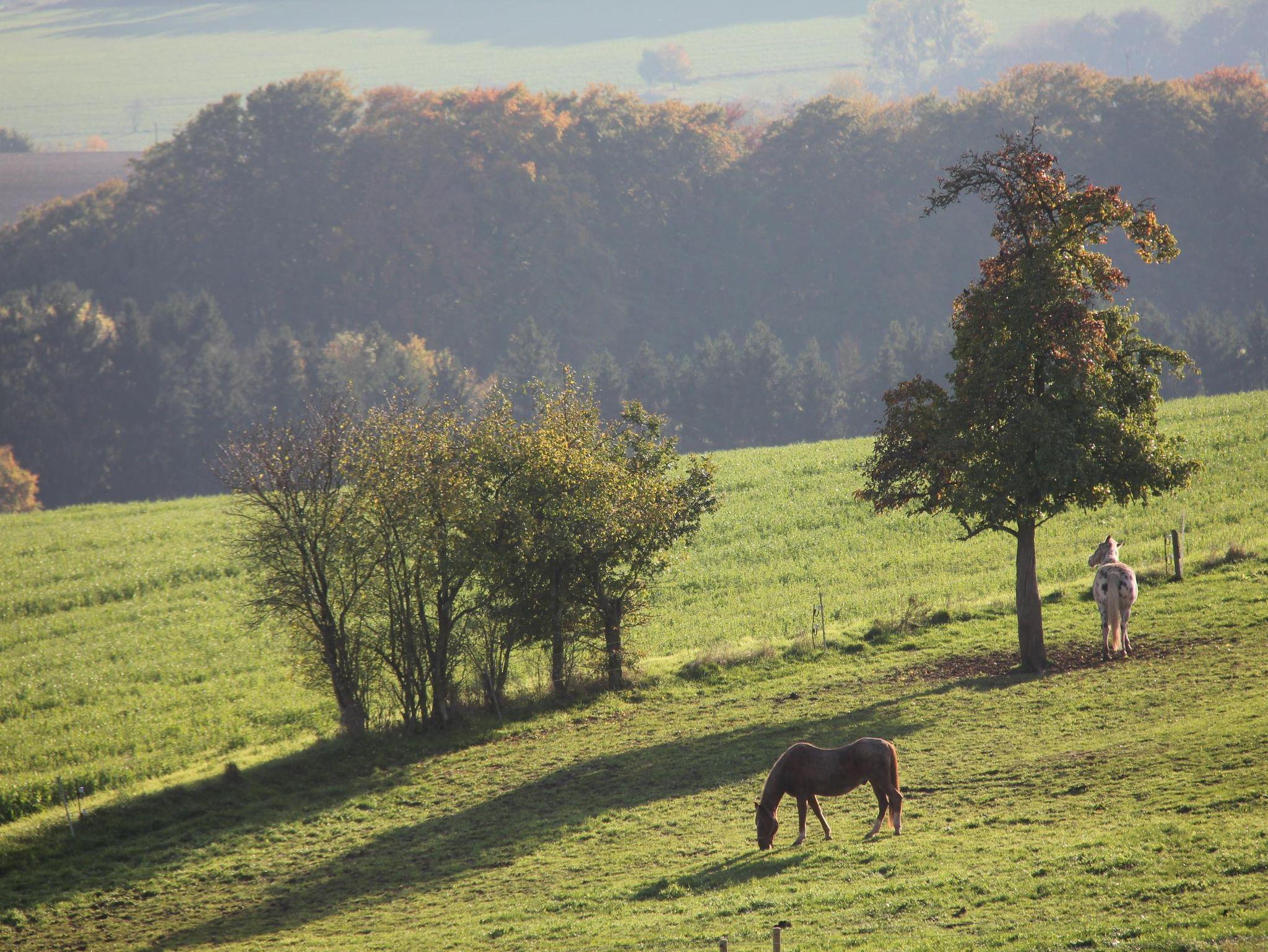 Im 17ten Jahrhundert ein reiches Herrenhaus, wurde De La Fontaine zwischen 1812 und 1816 zum landwirtschaftlichen Anwesen umgebaut und beherbergt noch heute viele authentische Details und einen unverwechselbaren historischen Charakter. Das Haus mit romantischem Garten, Liegewiese und Pferdekoppeln am Ortsrand Feilsdorfs, hoch über dem Prümtal und rundherum Felder, Wälder und einer wilden Natur, befindet sich in einer der besten Lagen der Region. Unser Haus ist ein ländlicher Rückzugsort, wo man sich nach einer bewegten Erkundung Triers, Luxemburgs oder dem Nationalpark Süd-Eifel entspannt. Warum nicht entlang der Prüm spazieren gehen oder in einem nahen Restaurant ein exzellentes Mahl genießen?