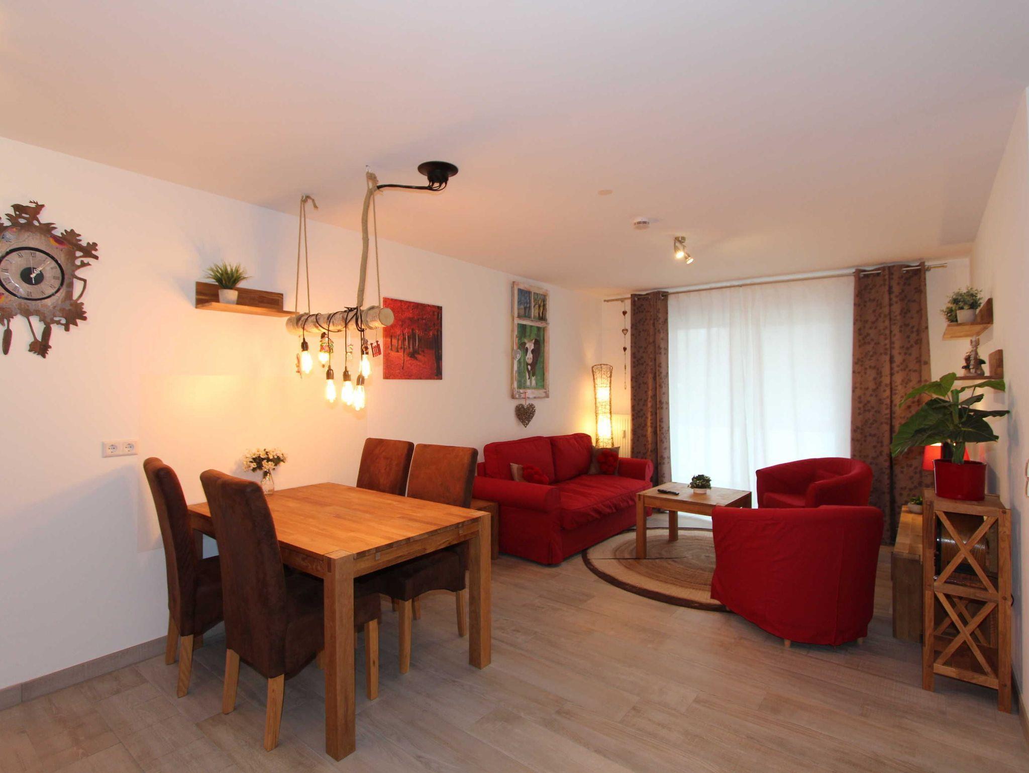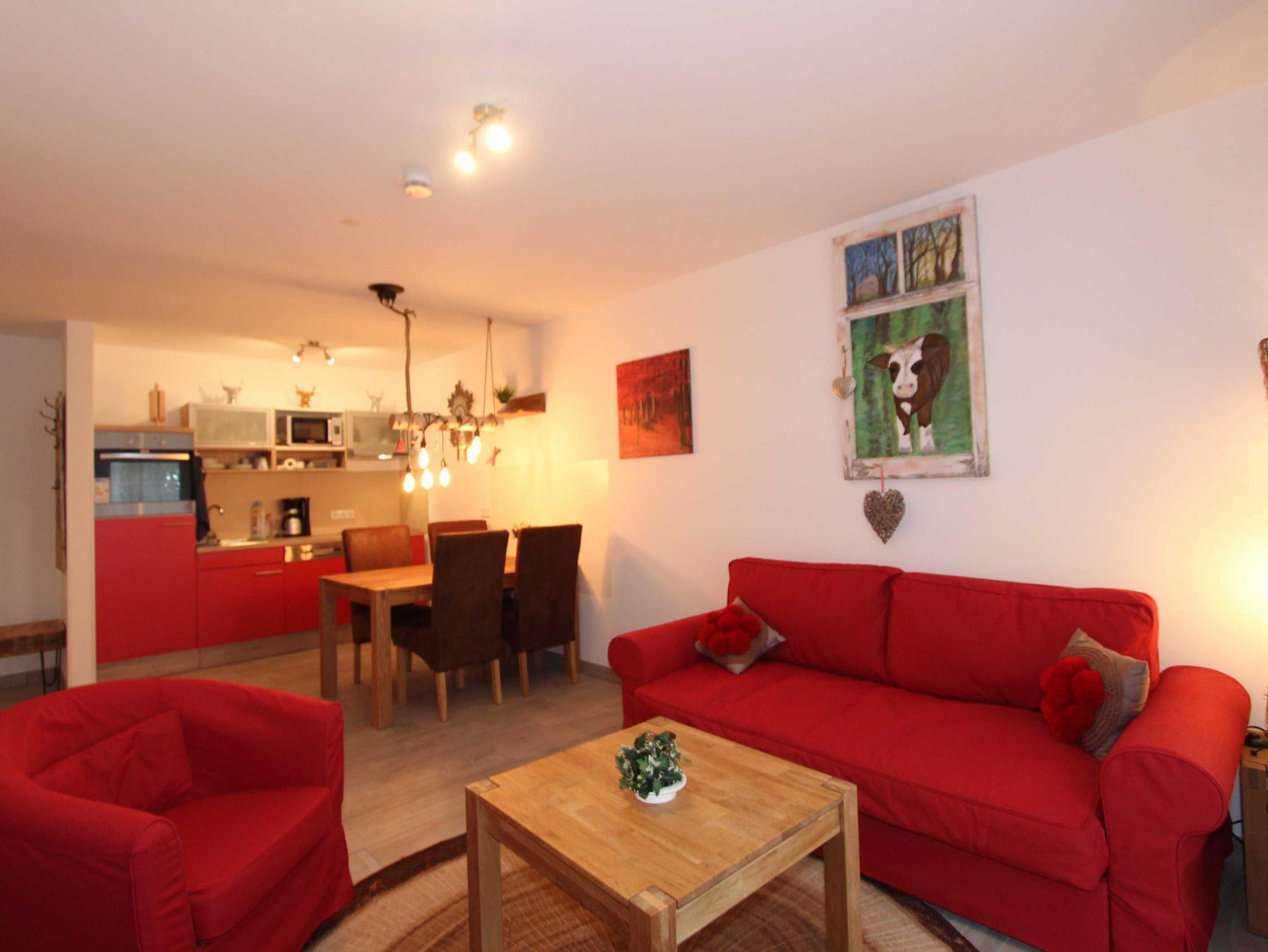 Verbringen Sie Ihren Urlaub in unserem gemütlichen 2-Zimmer-Appartement für bis zu 4 Personen. Die individuell eingerichtete Wohnung verfügt über einen Wohnraum mit offener Küche, separatem Essplatz und einer Sitzecke mit Couch, die sich unkompliziert zu einem bequemen Doppelbett umbauen lässt. Ein SAT-TV ist hier ebenfalls vorhanden. Im behaglichen Schlafzimmer mit Doppelbett werden Sie sicher erholsame Nächte verbringen. Nach einem erlebnisreichen Tag auf der Skipiste oder nach einer Wanderung bietet das Bad mit seiner Whirlpoolwanne Entspannung pur. Dusche und WC sind natürlich ebenfalls vorhanden. Des weiteren verfügt die Wohnung über einen Balkon.