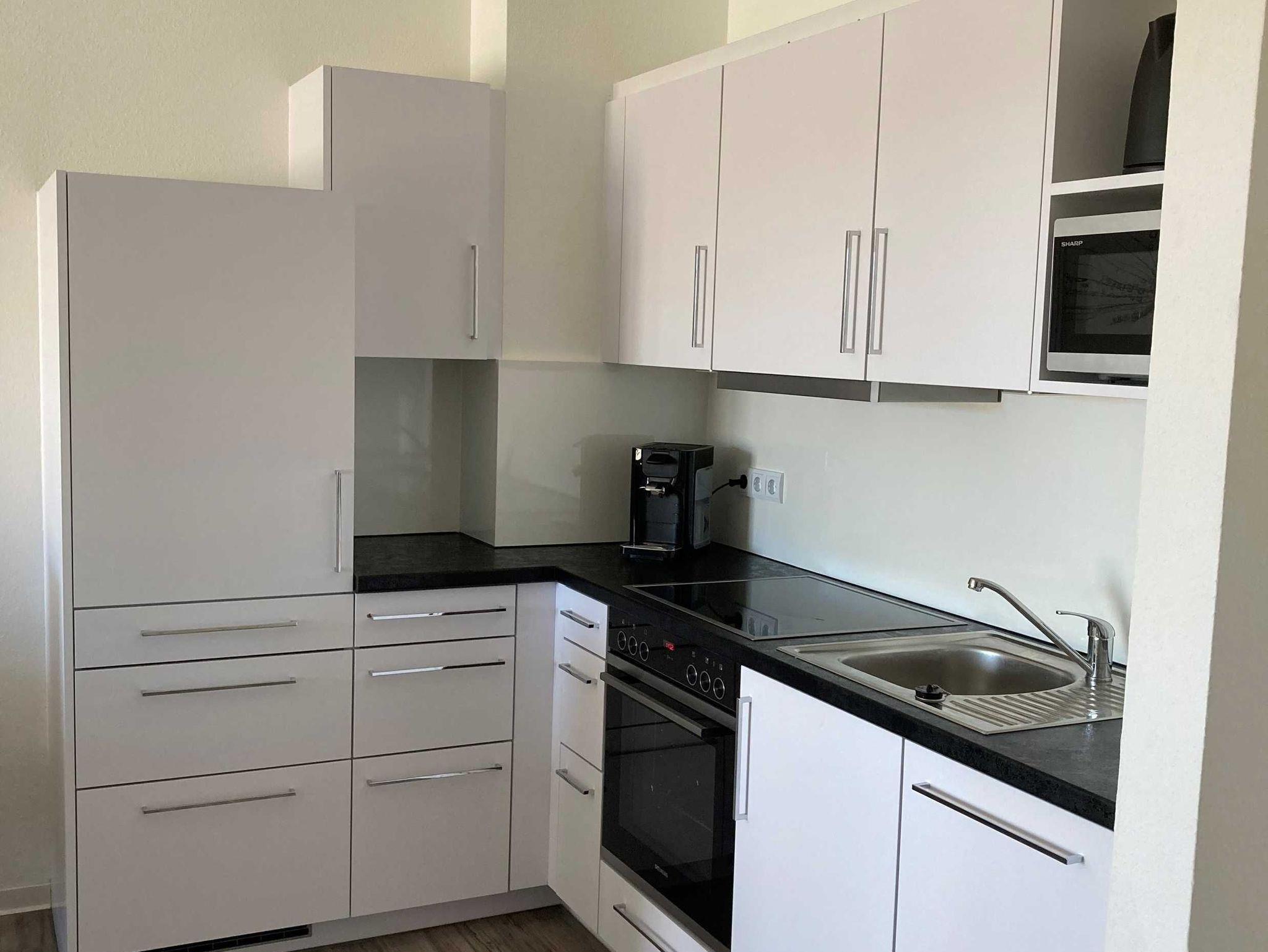 2-Zimmer-Appartement für 2-4 Personen, 1 Schlafzimmer mit Doppelbett, Wohn-Schlafraum mit Doppelbettcouch, separater Essplatz, voll ausgestatteter Küchenbereich mit Geschirrspüler, Bad mit Whirlpool und Dusche/WC, großer Balkon, SAT-TV.