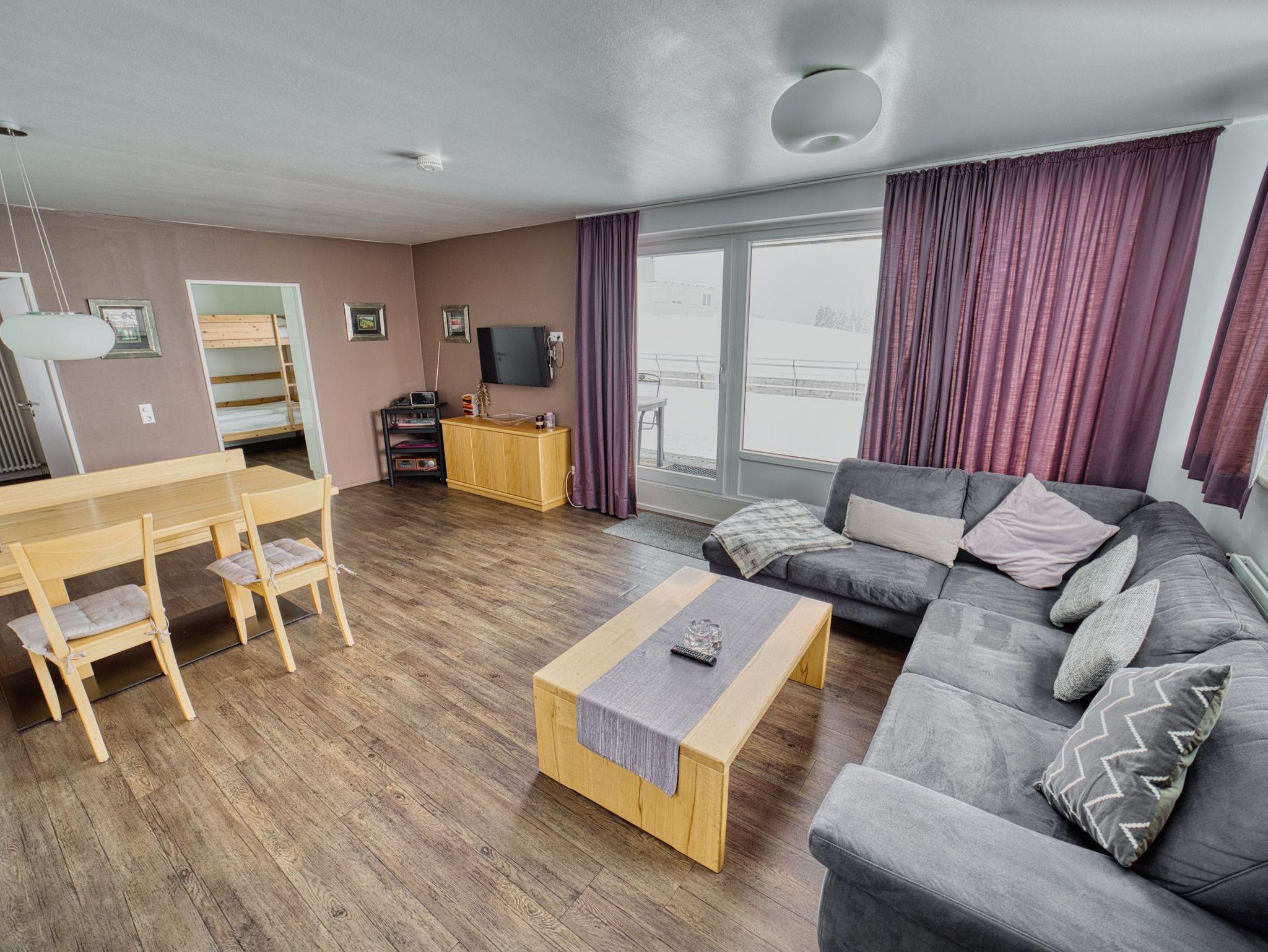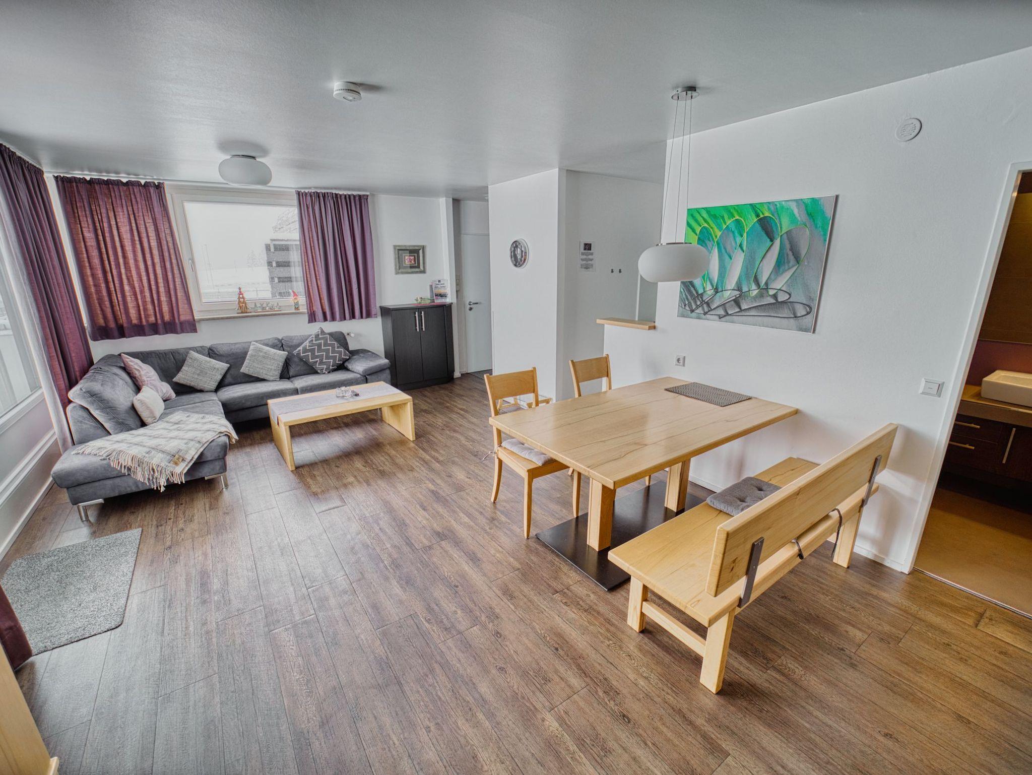 Diese Ferienwohnung mit grosser Terrasse befindet sich in der 2. Etage eines Appartementhauses und bietet Platz für maximal 2 Erwachsene und 2 Kinder unter 16 Jahre. Im Kinderzimmer, abgetrennt durch eine Tür, befindet sich ein Etagenbett. Die Wohnung verfügt über eine sehr grosse Terrasse mit Südblick.