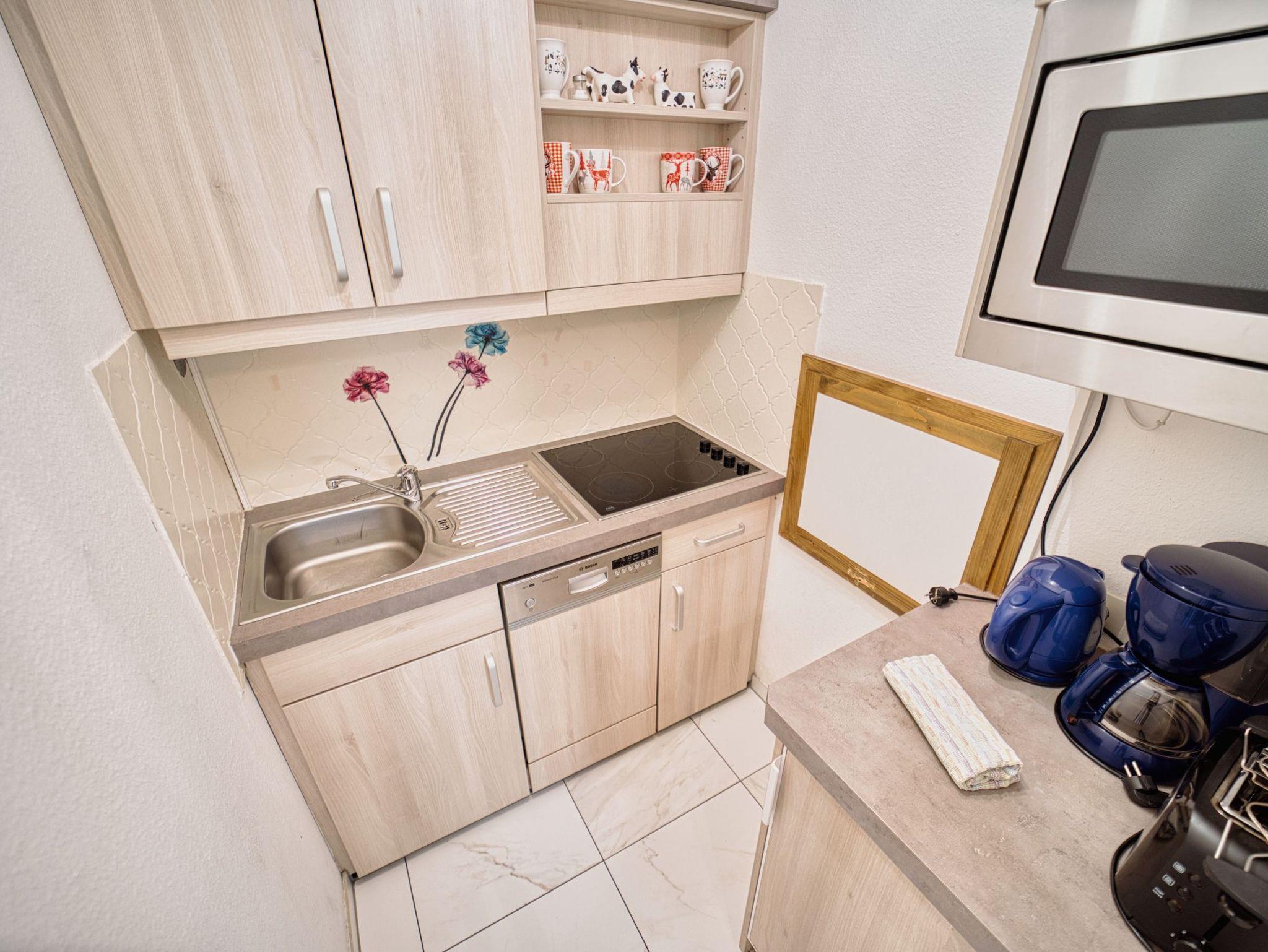 Diese Ferienwohnung befindet sich in der 4. Etage eines Appartementhauses und bietet Platz für maximal 2 Erwachsene und 2 Kinder unter 16 Jahre. Im Kinderzimmer, abgetrennt durch eine Gardine, befindet sich ein Doppelbett.