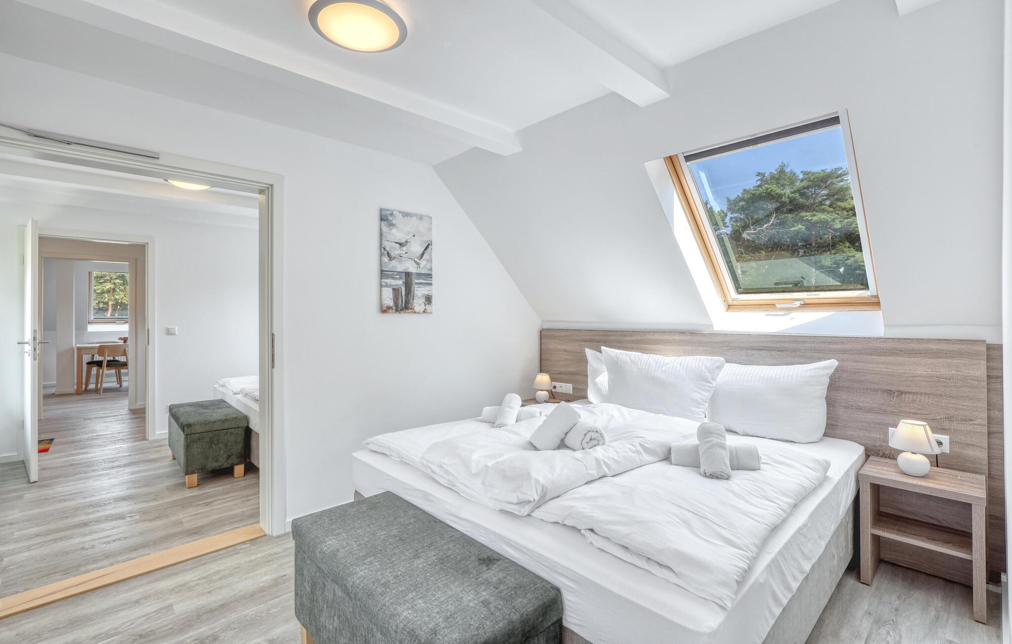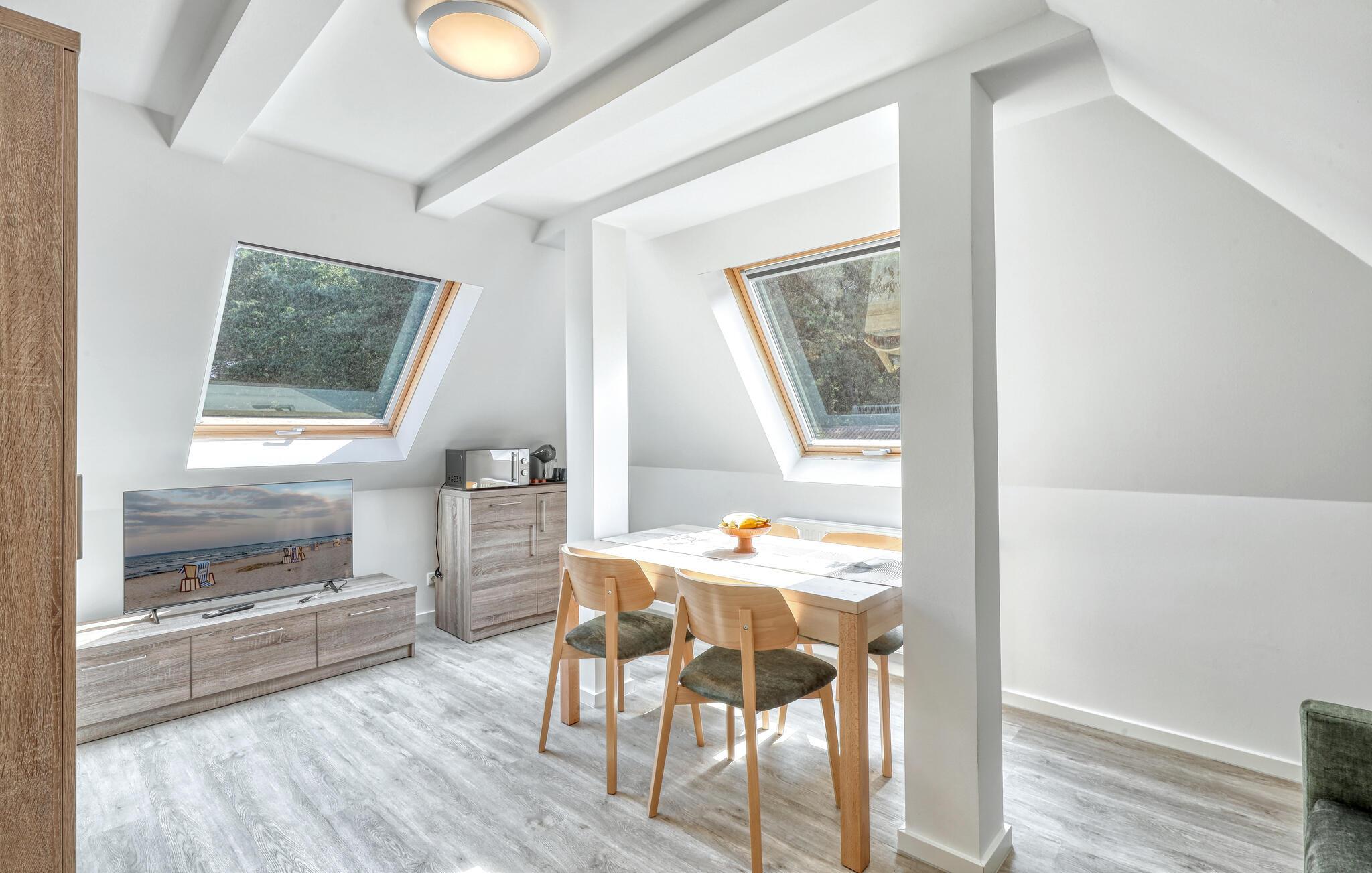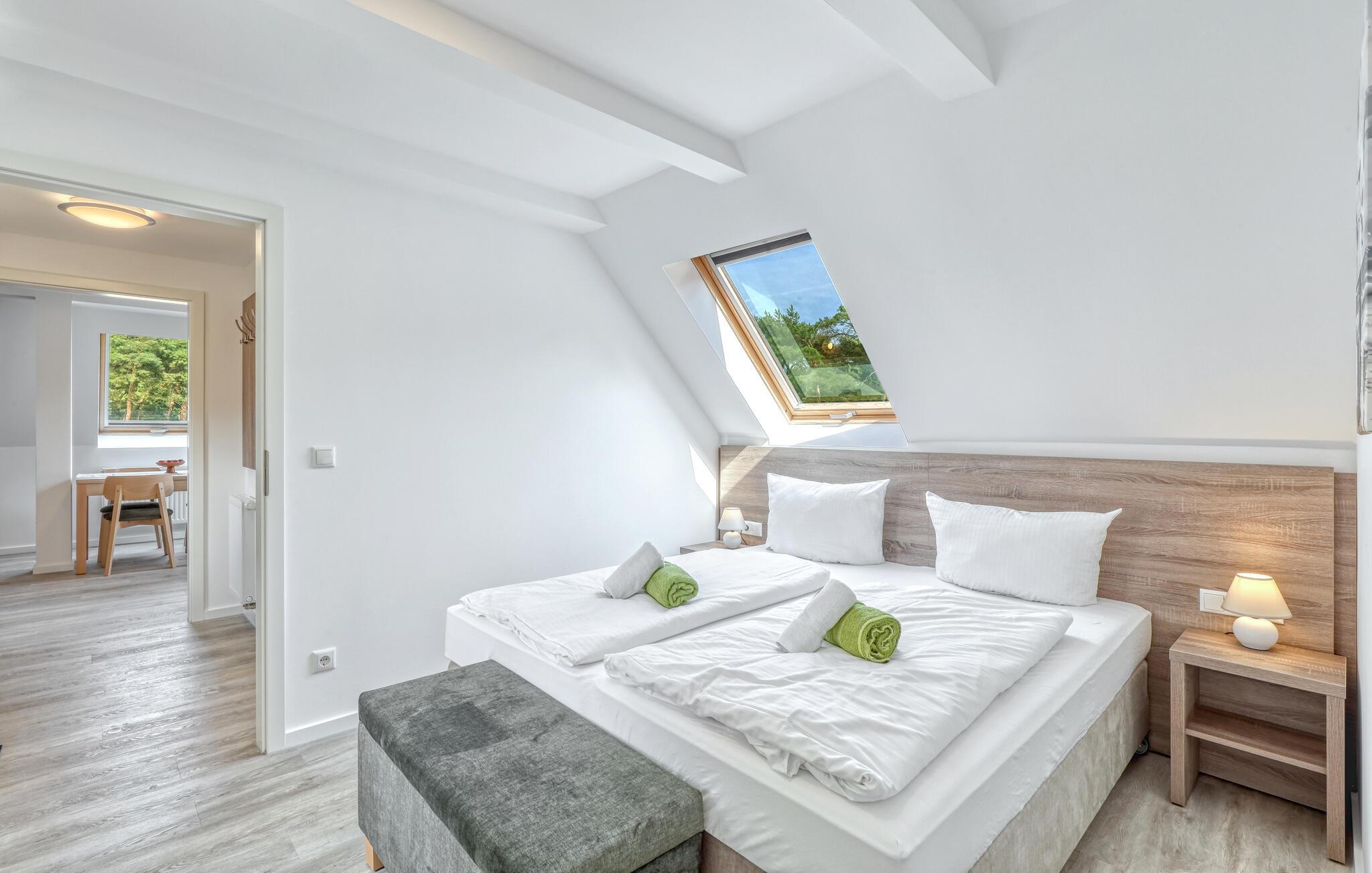Der er lagt op til nogle fredfyldte dage i denne funktionelle og moderne lejlighed, der ligger nogle få skridt fra den smukke naturstrand. Her er der gode rammer til par, familier eller venner på tur. Feriekomplekset ligger idyllisk placeret mellem fyrreskove og klitter, ideelt til afslappende dage ved havet eller aktiv rekreation midt i naturen. Efter en begivenhedsrig dag kan I vende tilbage til de lyse rum, sætte jer til rette i de behagelige møbler og snakke længe.